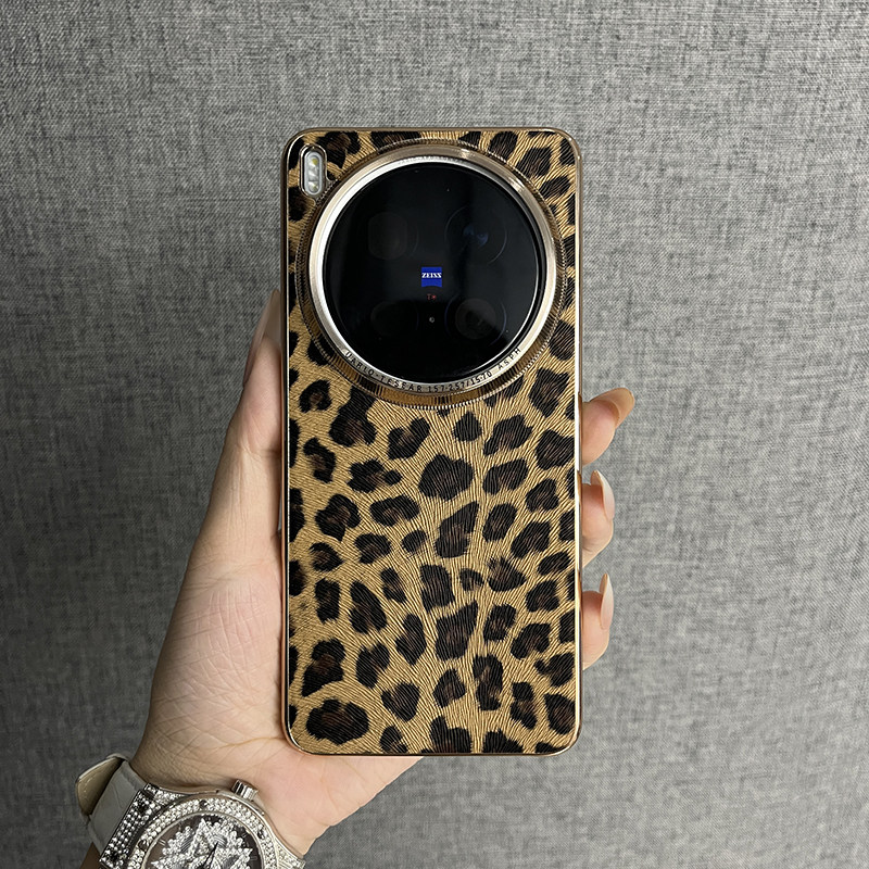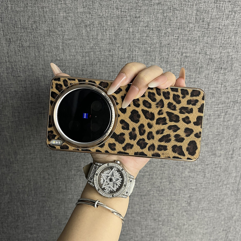 三只鱼【复古网红棕色豹纹】适用vivox200/100ultra/x200Pro手机壳新款电镀金边时尚小众防摔半包保护套男女