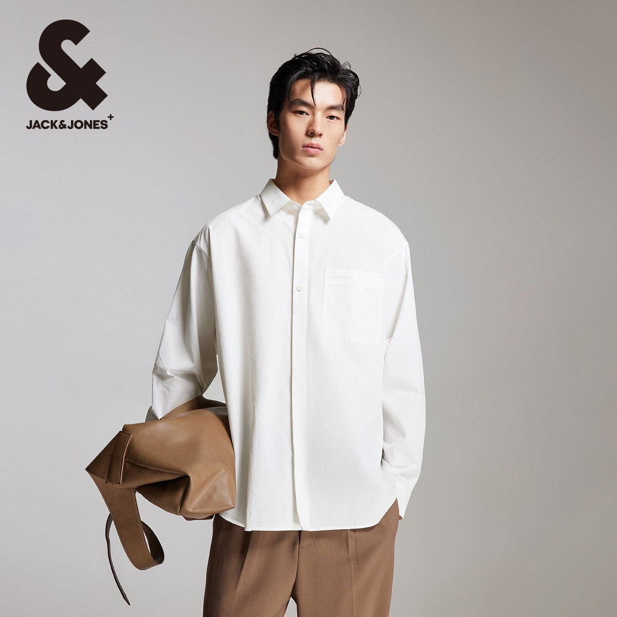 杰克琼斯男装秋季潮流时尚简约字母刺绣宽松舒适百搭尖领长袖衬衫