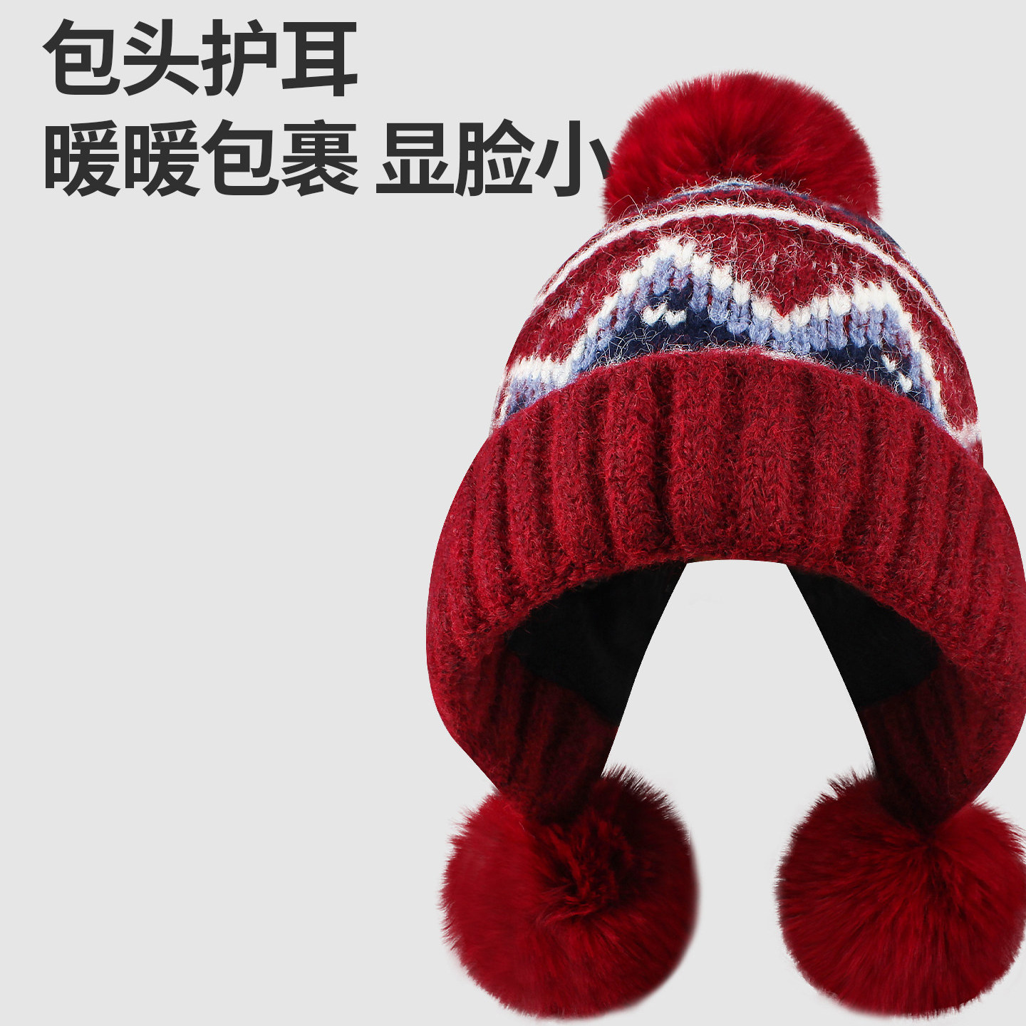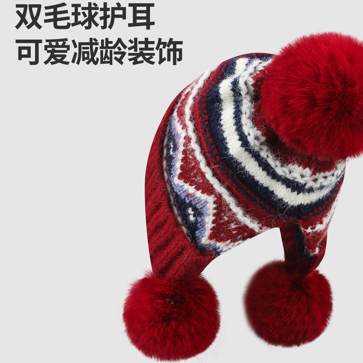 Classy key新加坡设计师联名款费尔岛风针织帽护耳保暖毛球毛线帽