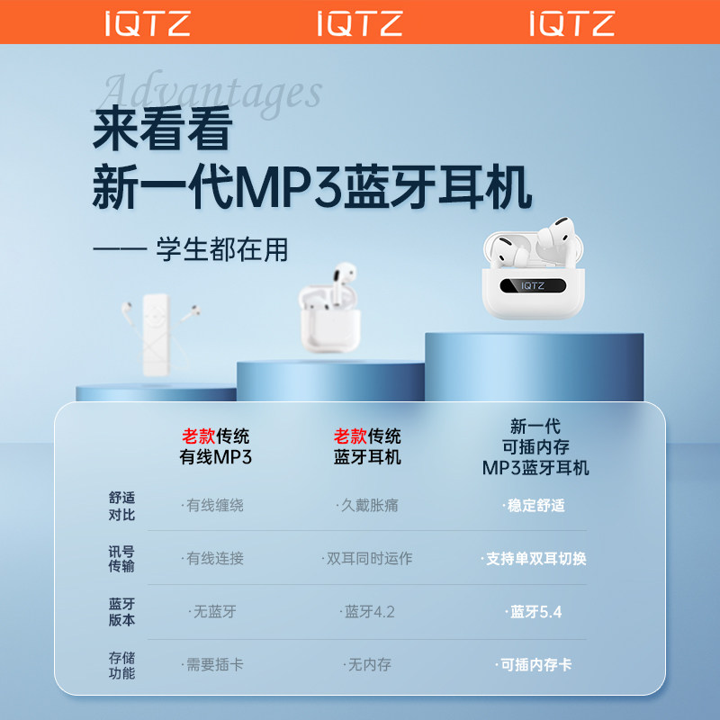 iQTZ MP3随身听学生版无线蓝牙耳机一体式听歌专用高中生小型真