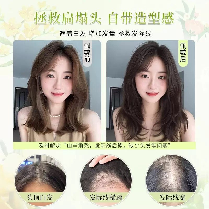 不用戴发网假发女片头顶补发遮白发增发量蓬松整顶层次锁骨假发片