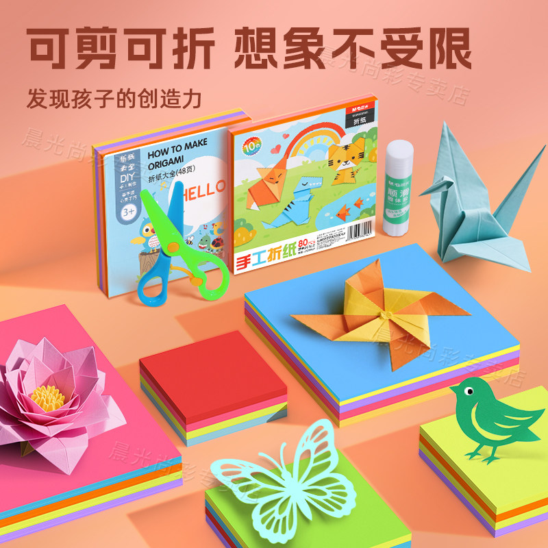 晨光折纸彩纸手工专用叠纸儿童幼儿园手工diy彩色卡纸a4小学生剪纸窗花美术纸画画软厚千纸鹤制作材料包大全