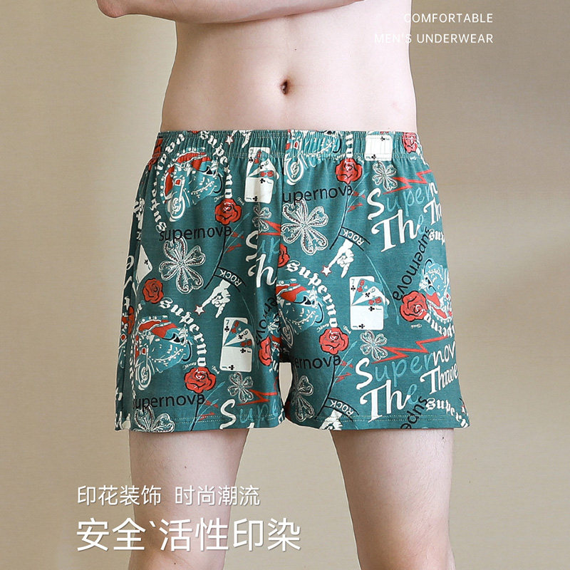 松山棉店蚕柔莫代尔男士内裤透气男生短裤青少年纯棉大码平角裤衩