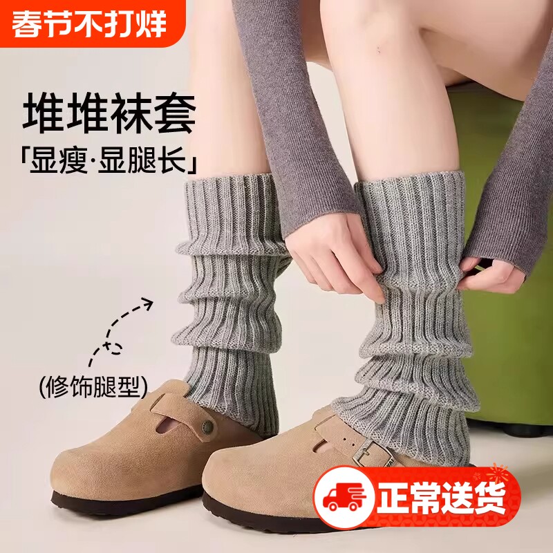 灰色袜套秋冬配雪地靴女款堆堆袜加厚腿套针织春秋搭配鲨鱼裤腿袜