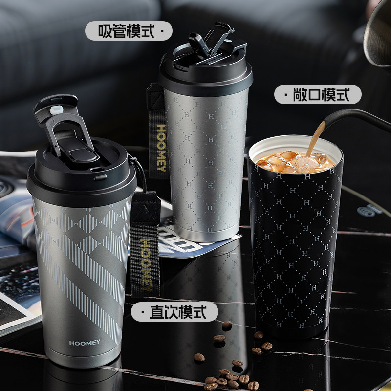 保温杯316不锈钢双饮咖啡杯大容量女高颜值随行吸管水杯情侣杯子