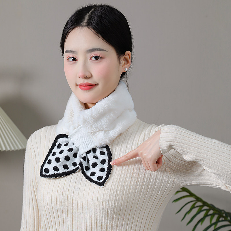 毛绒围巾女款2025新款冬韩系氛围感可爱百搭保暖交叉毛领围脖护颈