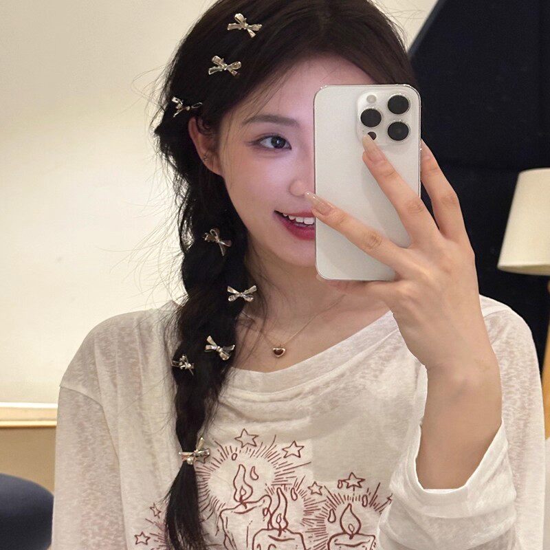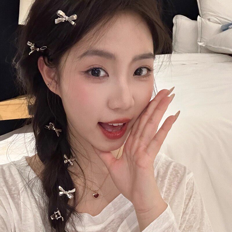 金属银色蝴蝶结发夹女前额侧边刘海鸭嘴夹2024年新款发卡头饰碎发