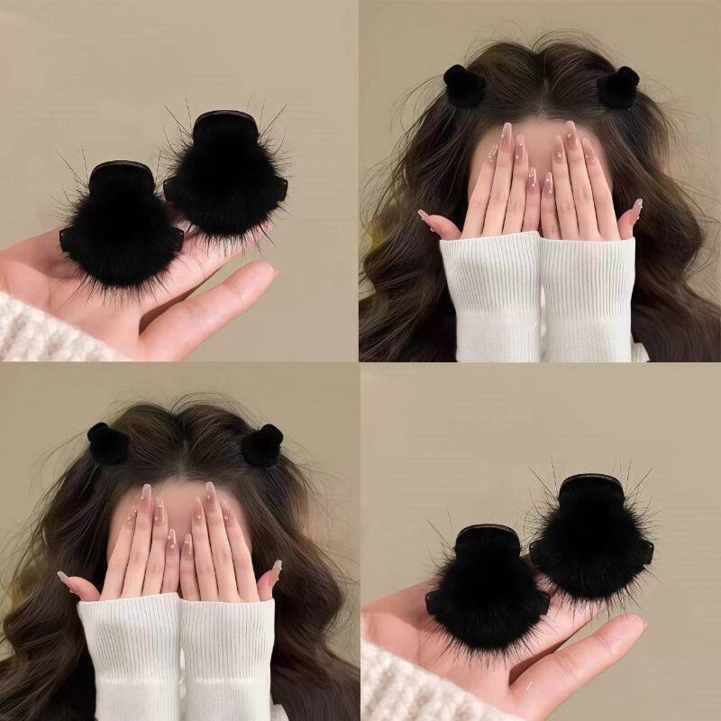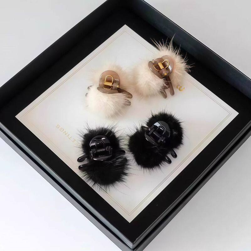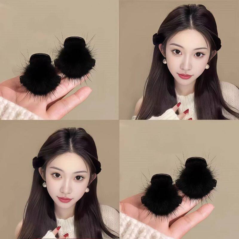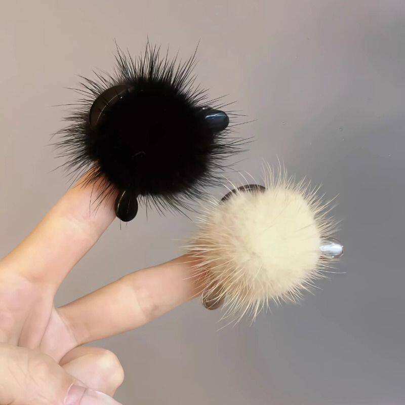 秋冬新款水貂毛小抓夹少女风公主头毛毛发夹韩国顶夹刘海毛毛发饰