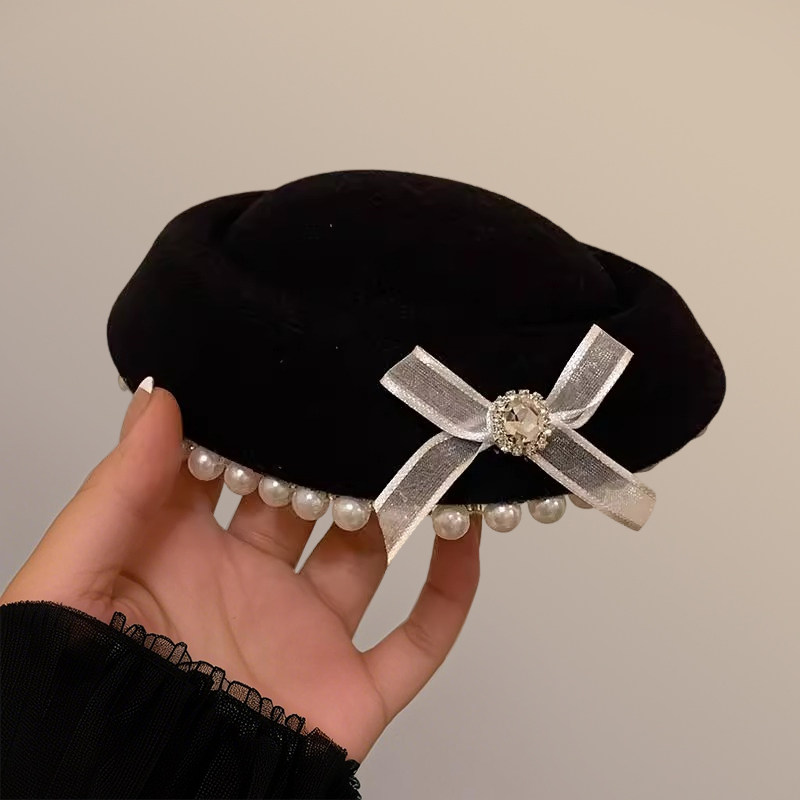 蝴蝶结小礼帽女水手帽头饰法式赫本英伦海军风少女jk圆顶贝雷帽子