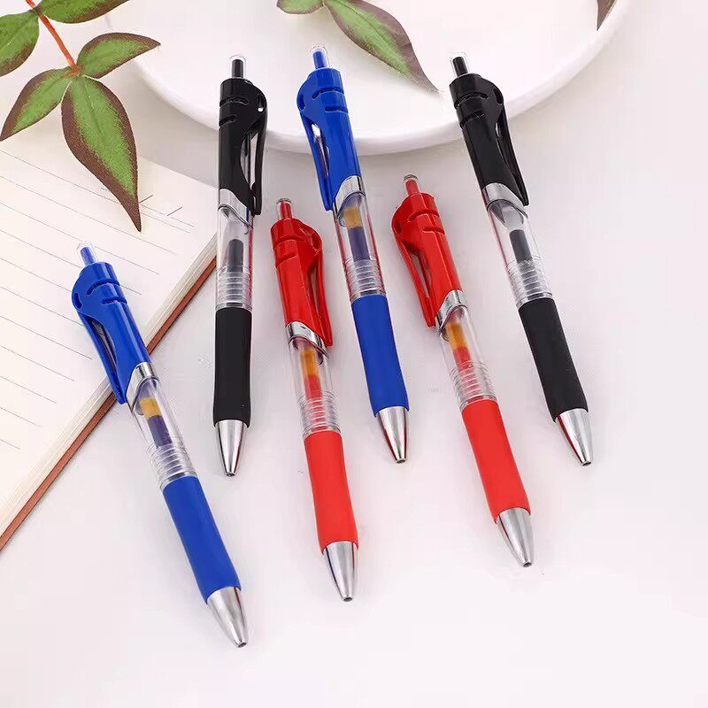按动式中性笔0.5mm子弹头黑色红色蓝色三色套装书写顺滑大容量