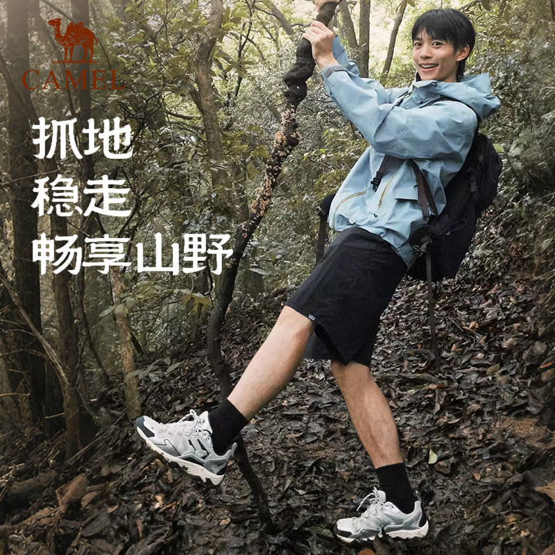 骆驼昆仑登山鞋男2026春季户外休闲徒步鞋银色加绒运动跑步鞋女