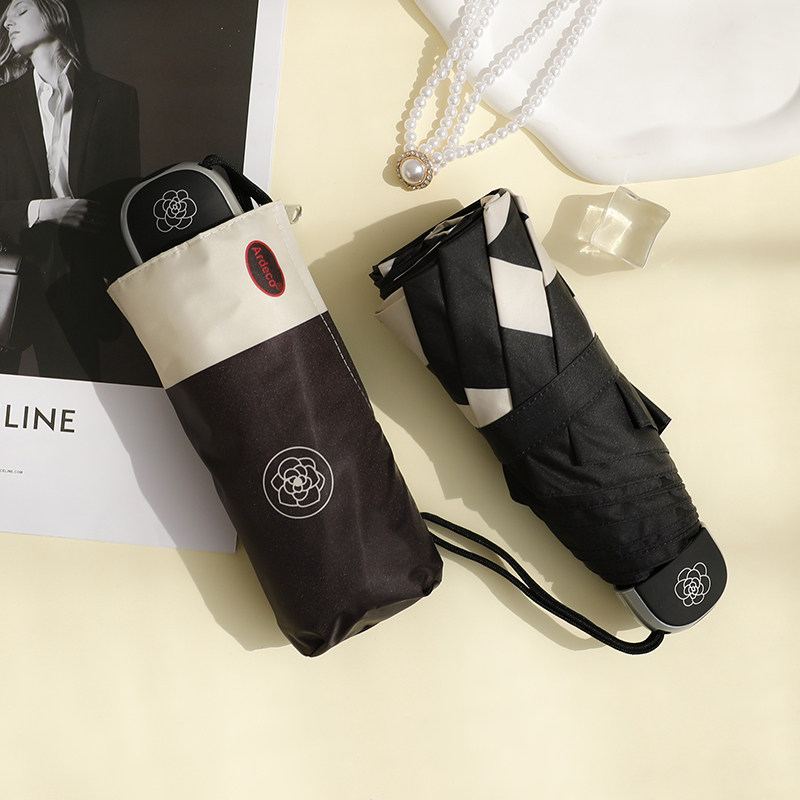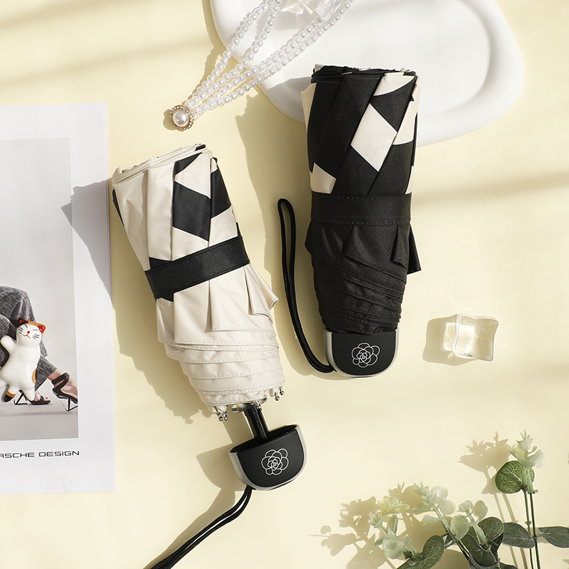 Cmon五折伞太阳伞女防晒紫外线遮阳伞口袋伞黑胶晴雨伞超轻胶囊伞