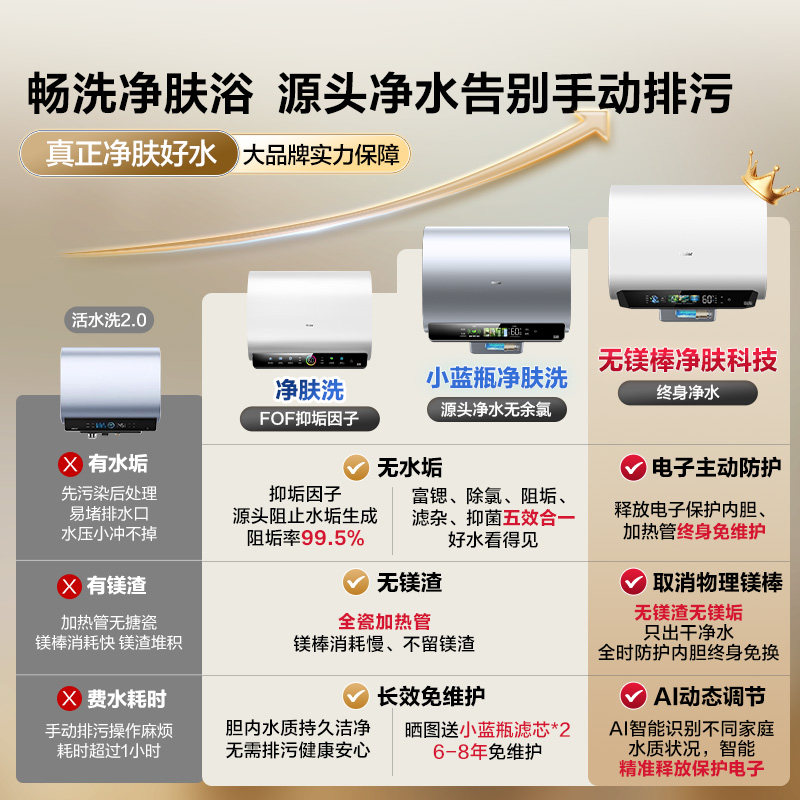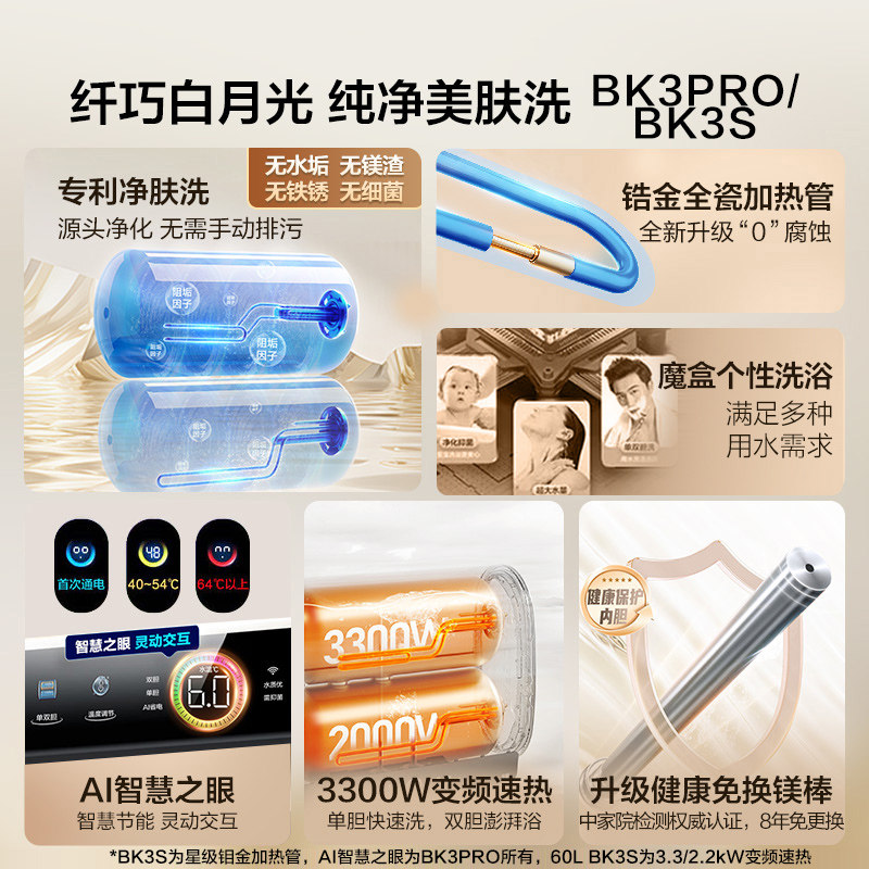 [政府焕新补贴]海尔BK3pro魔盒扁桶电热水器家用电双胆净水洗白巧