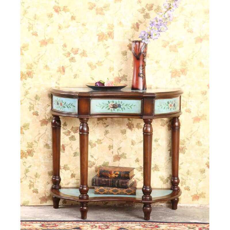 至高美式乡村门厅玄关桌复古彩绘田园装饰柜蓝色半圆桌走廊桌