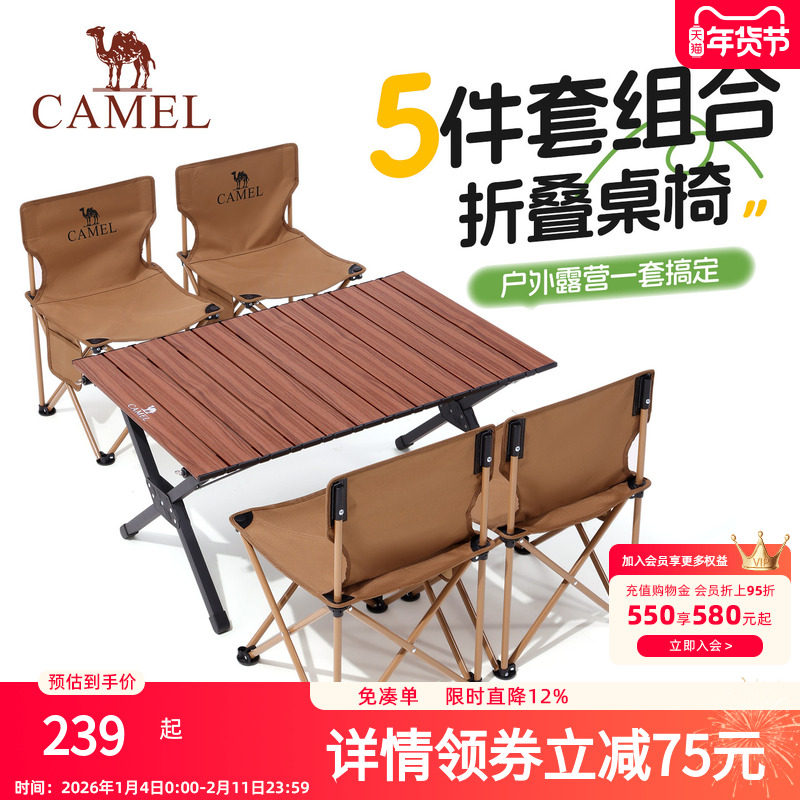 骆驼户外折叠桌椅套装5件套蛋卷桌便携露营椅子装备全套野餐2025