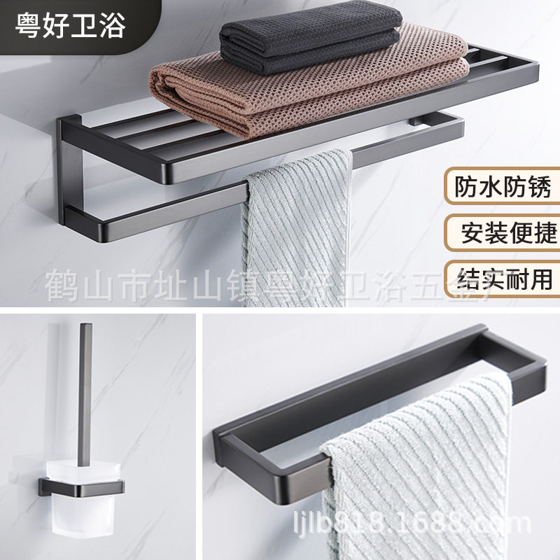 美式高端枪灰色304不锈钢浴巾架卫生间毛巾架置物架五金挂件简约