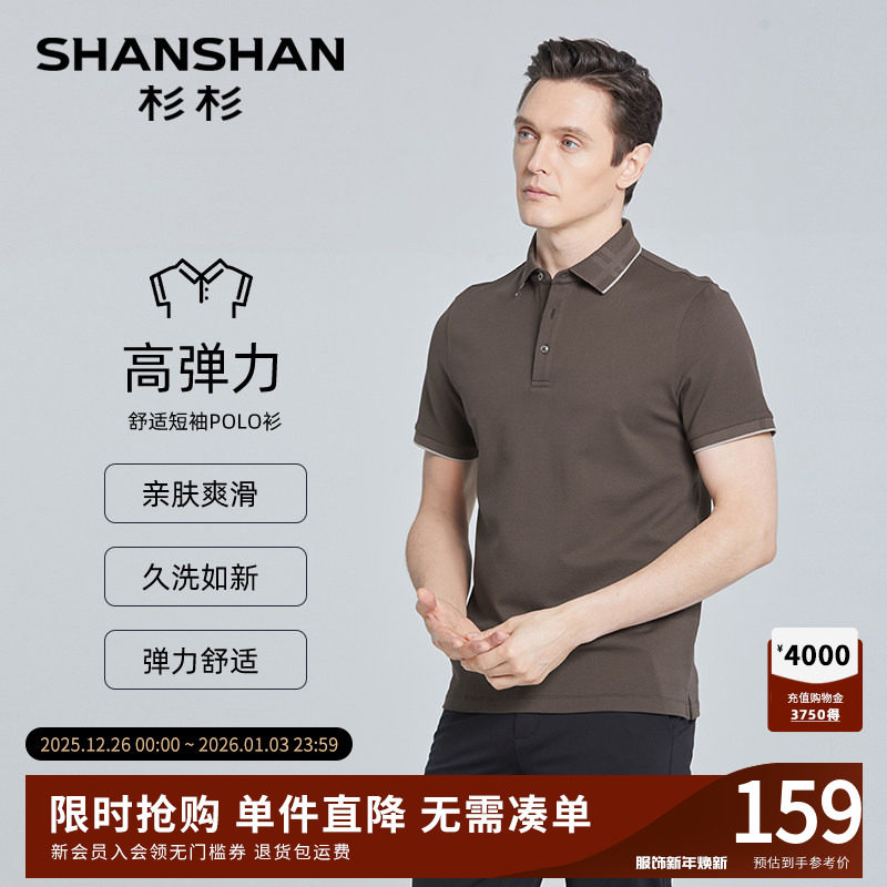 SHANSHAN杉杉短袖T恤男2025夏季新款弹力中年男士纯色翻领polo衫