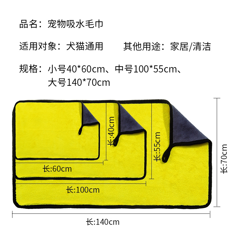 宠物吸水毛巾加厚速干不粘毛用品狗狗猫咪专用洗澡毛巾宠物专用品