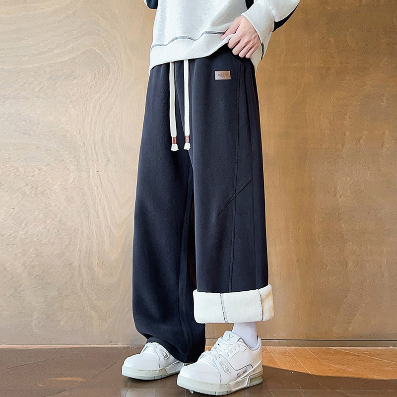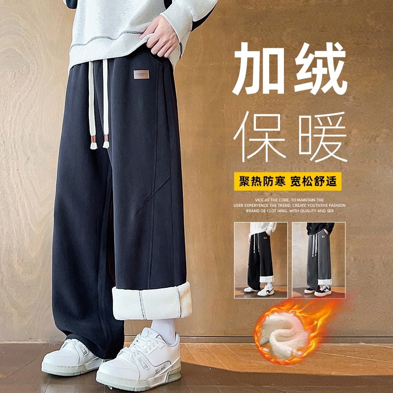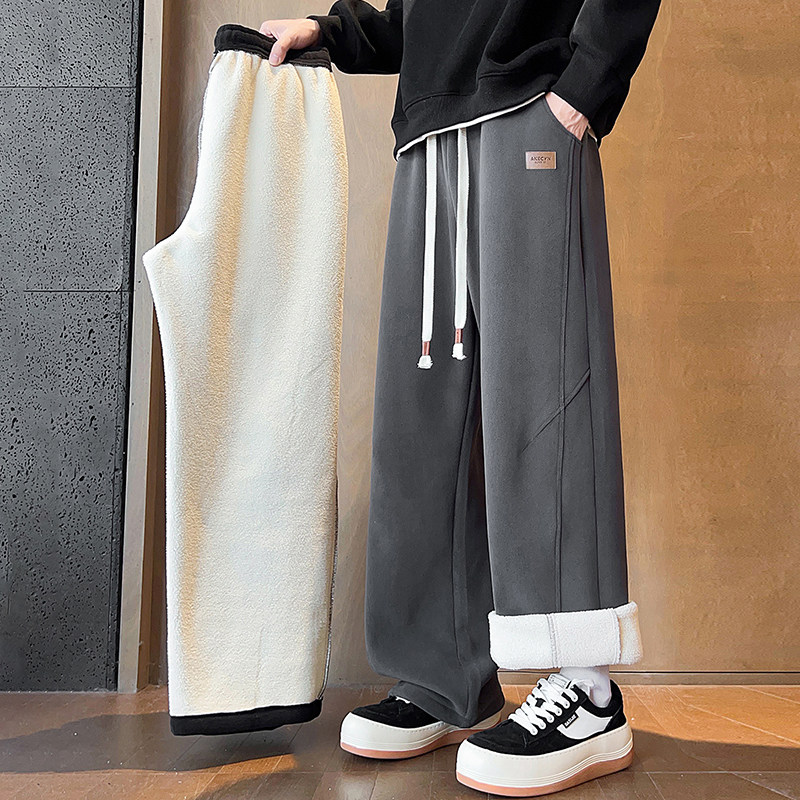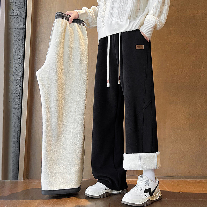 羊羔绒裤子男士冬季加绒直筒裤加厚保暖卫裤东北零下防寒棉裤男款
