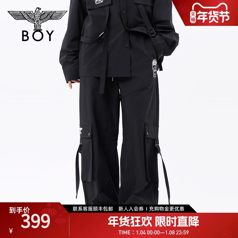 BOYLONDON美式大口袋潮酷直筒工装裤夏季男女同款朋克长裤N34045