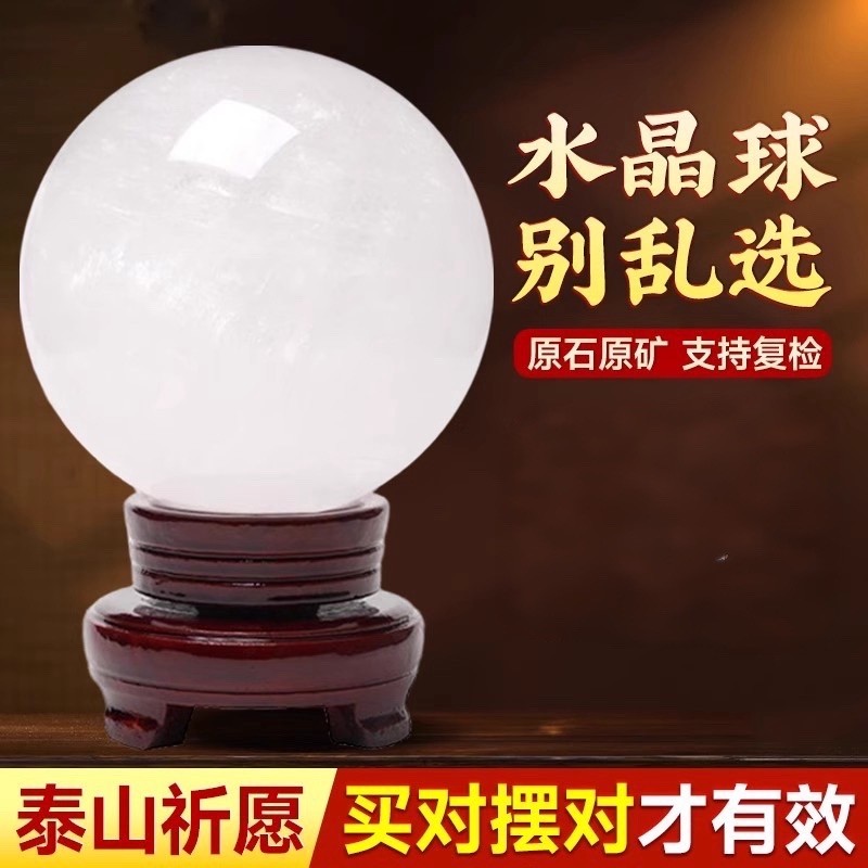 天然原石水晶球白水晶冰洲球白色玄关石球摆件办公室招财客厅桌面