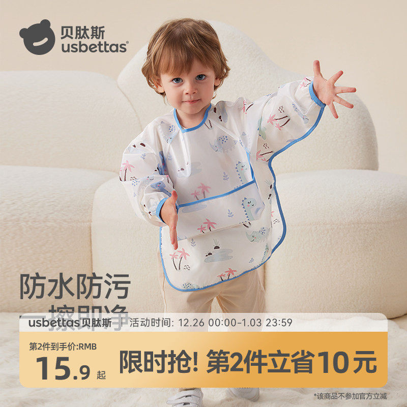 贝肽斯宝宝吃饭罩衣男女婴儿围兜防水防脏短袖围裙儿童辅食大饭兜