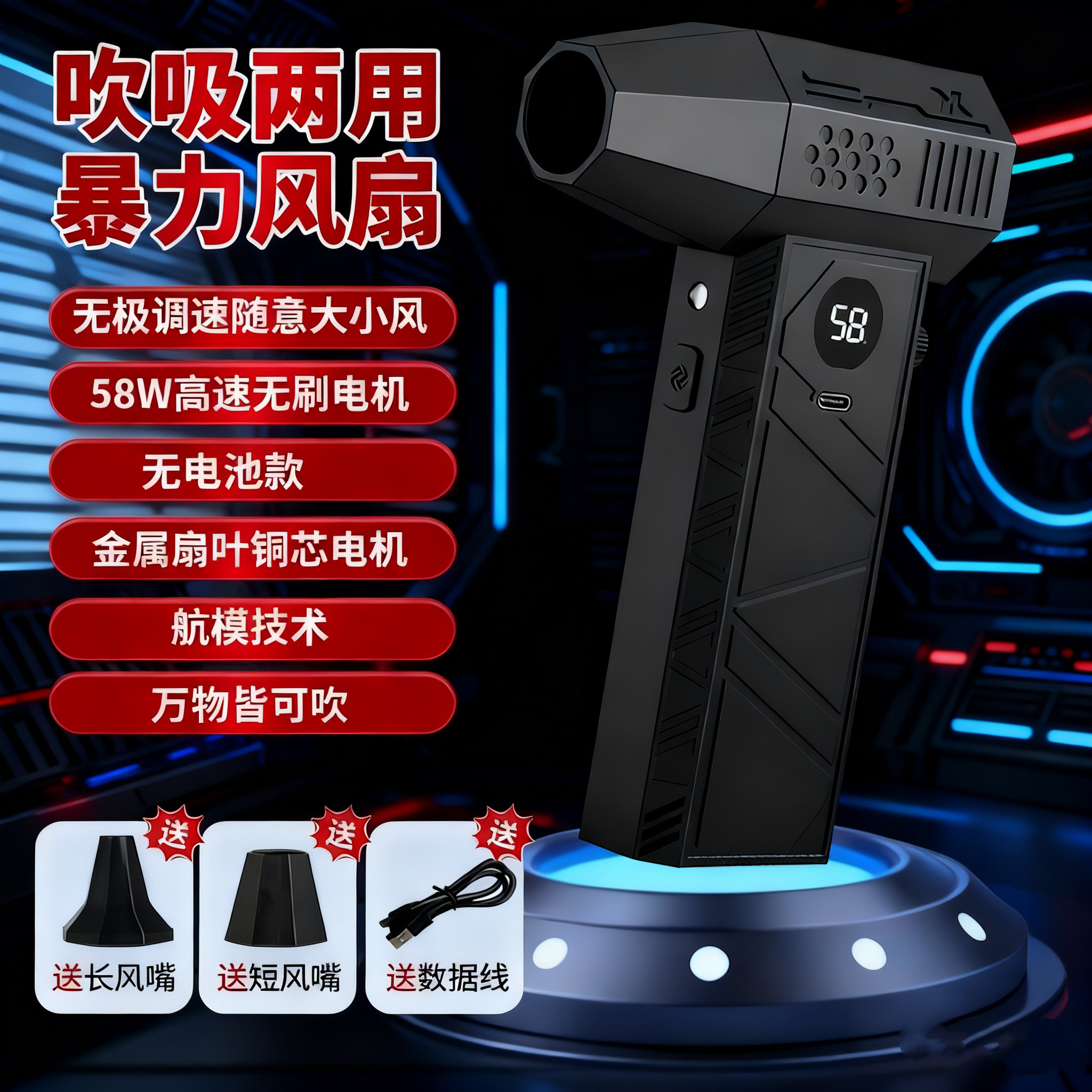 霸叶可换电池暴力风扇超级涡轮手持高速涵道无刷电动汽车吹灰神器