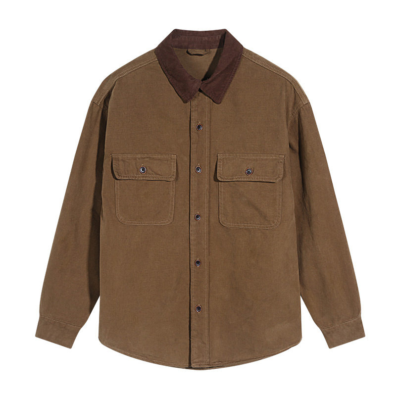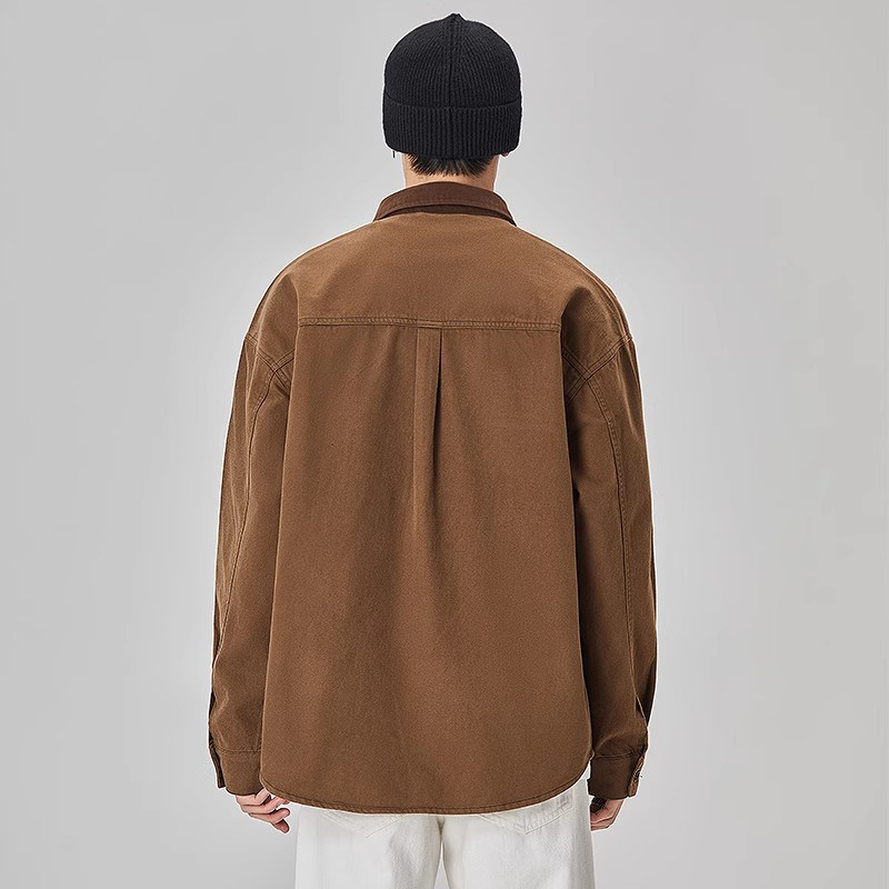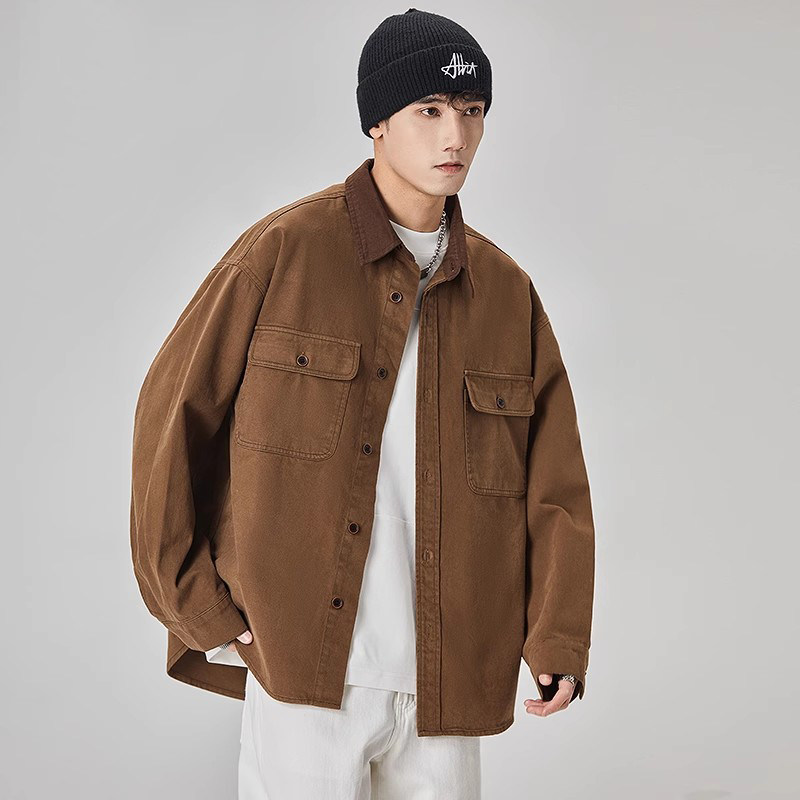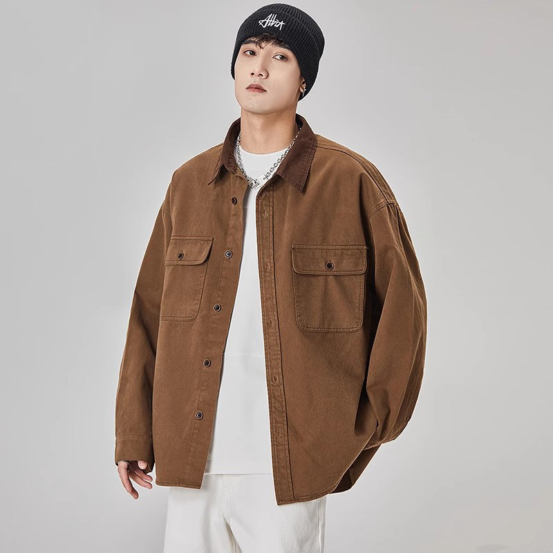 ALLIN 工装美式复古衬衫男春秋宽松夹克翻领痞帅外穿口袋衬衣外套