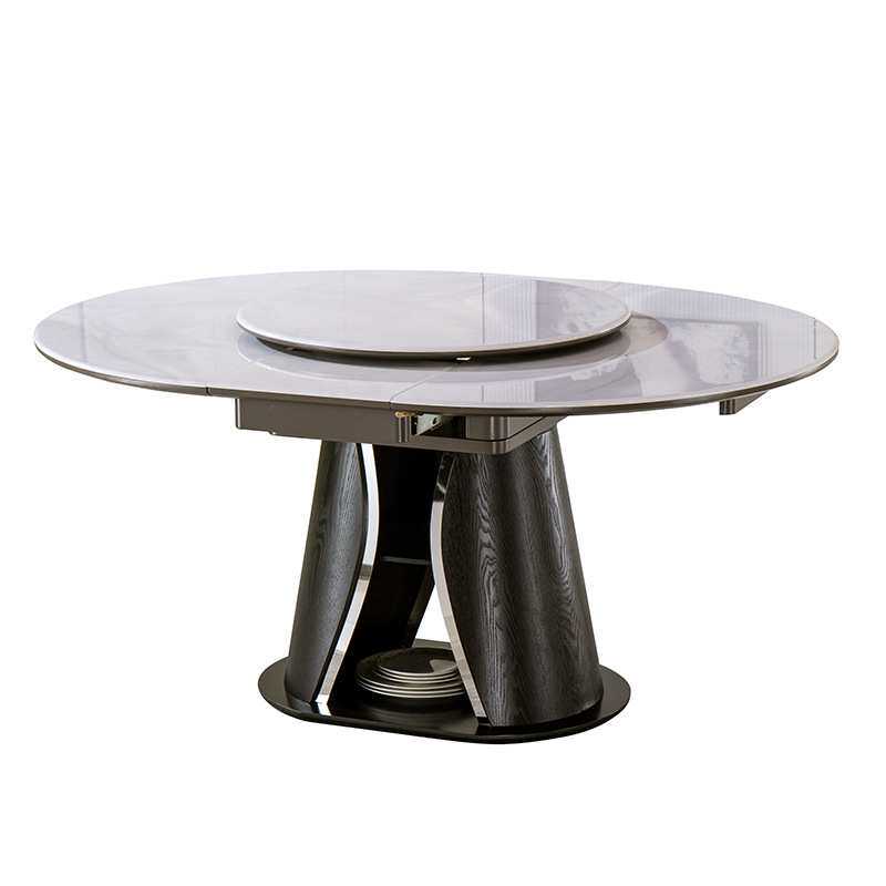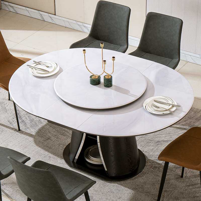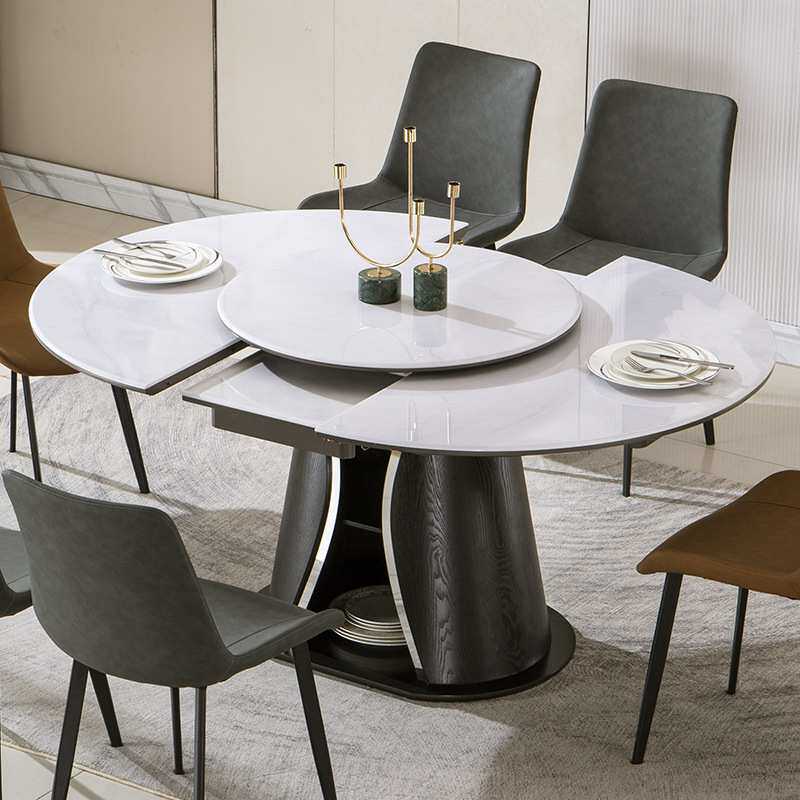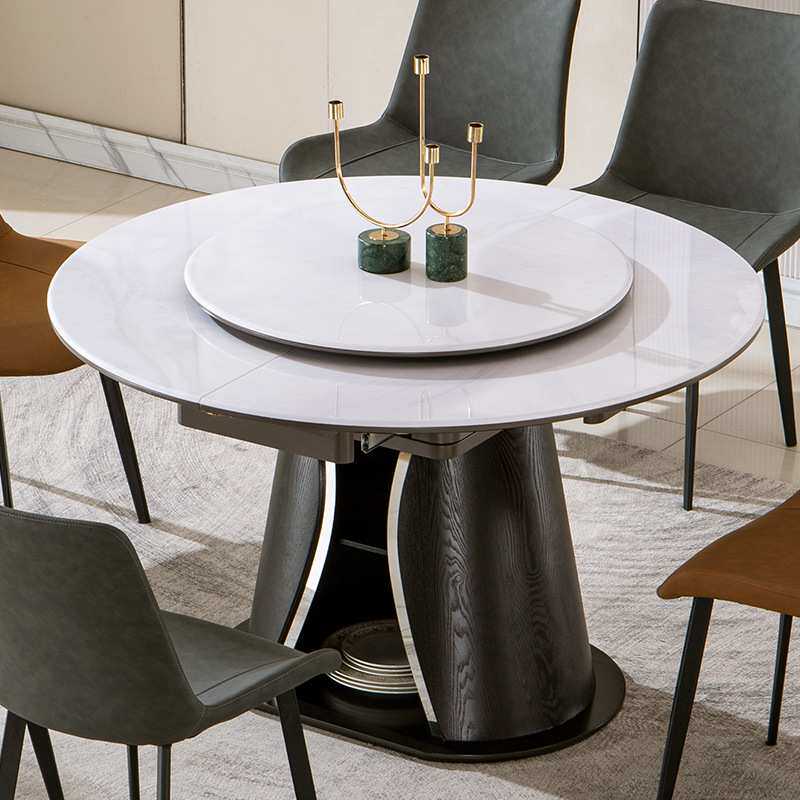 实木岩板餐桌圆桌可伸缩微晶石餐桌椅组合客厅圆形桌子岩板饭桌