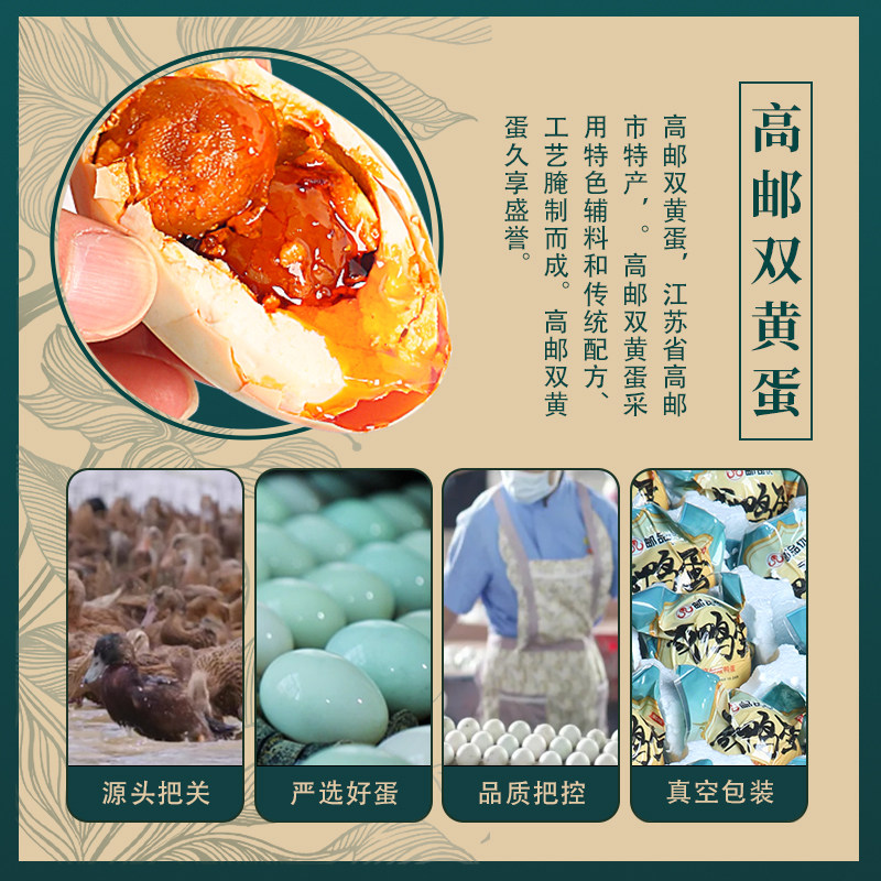 邮品优高邮双黄咸鸭蛋正宗流油新鲜非海鸭蛋熟蛋黄旗舰店特大咸蛋