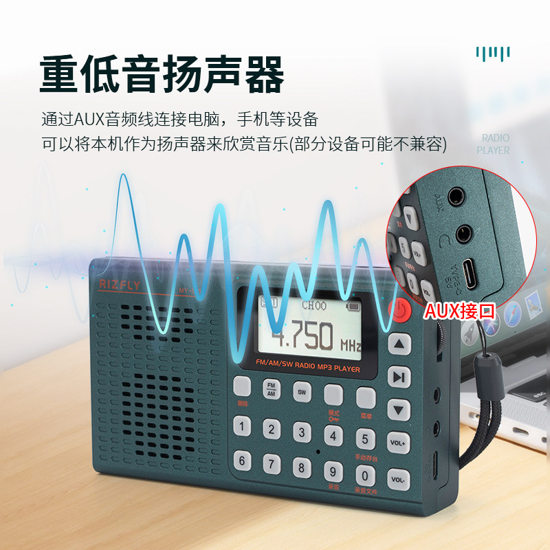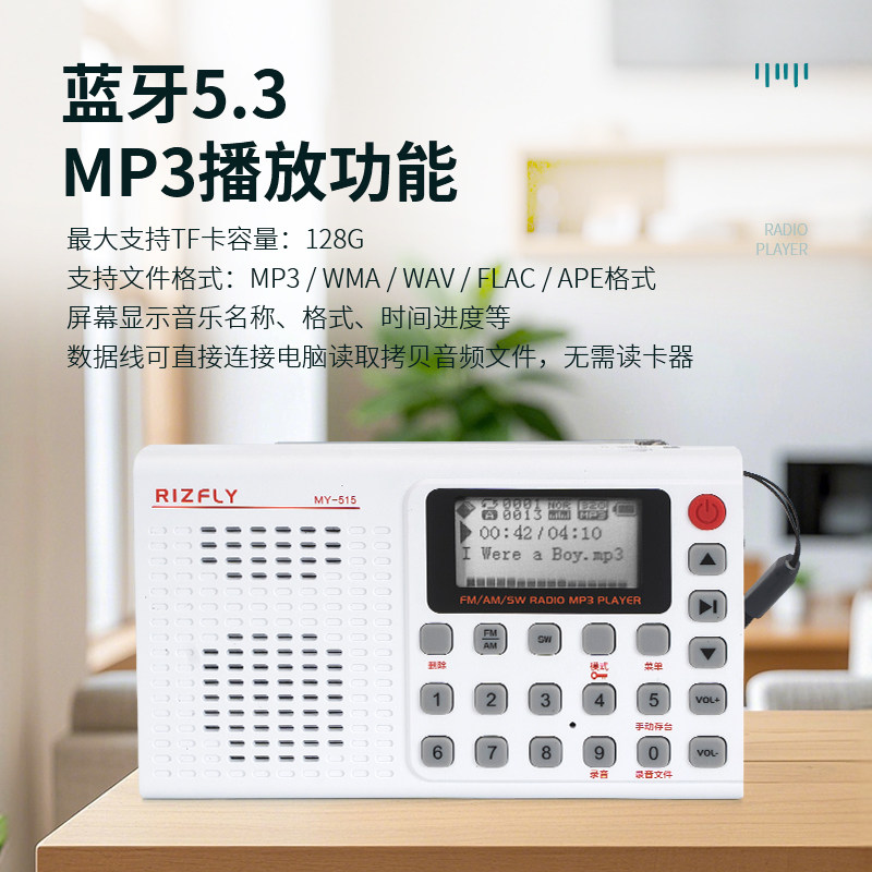 米跃MY515全波段收音机插卡蓝牙音响录音机文件夹歌词显示故事机