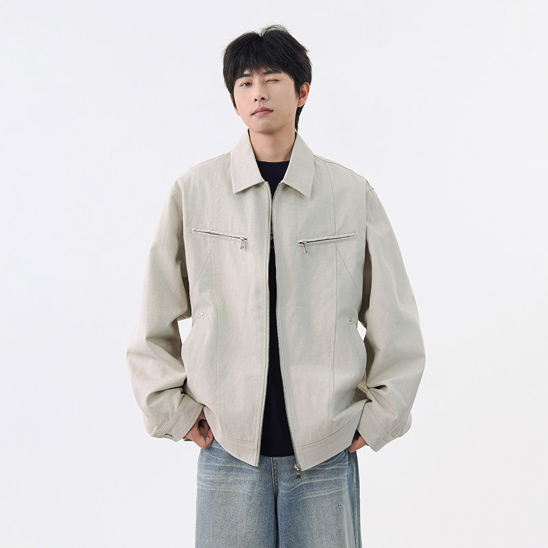 Wassup Shark美式牛仔外套男春秋季复古工装休闲夹克百搭翻领上衣