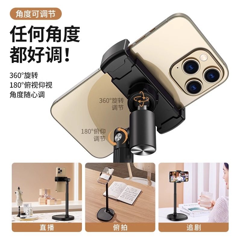 手机拍摄支架直播专用自拍杆三脚架落地式多功能支撑架通用捭机架户外便携伸缩升降网课考研复试架子三角支夹