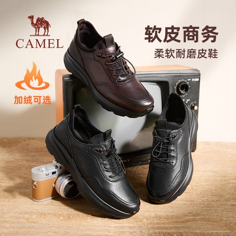 骆驼男鞋冬季真皮商务休闲通勤软底加绒保暖棉鞋爸爸鞋运动皮鞋