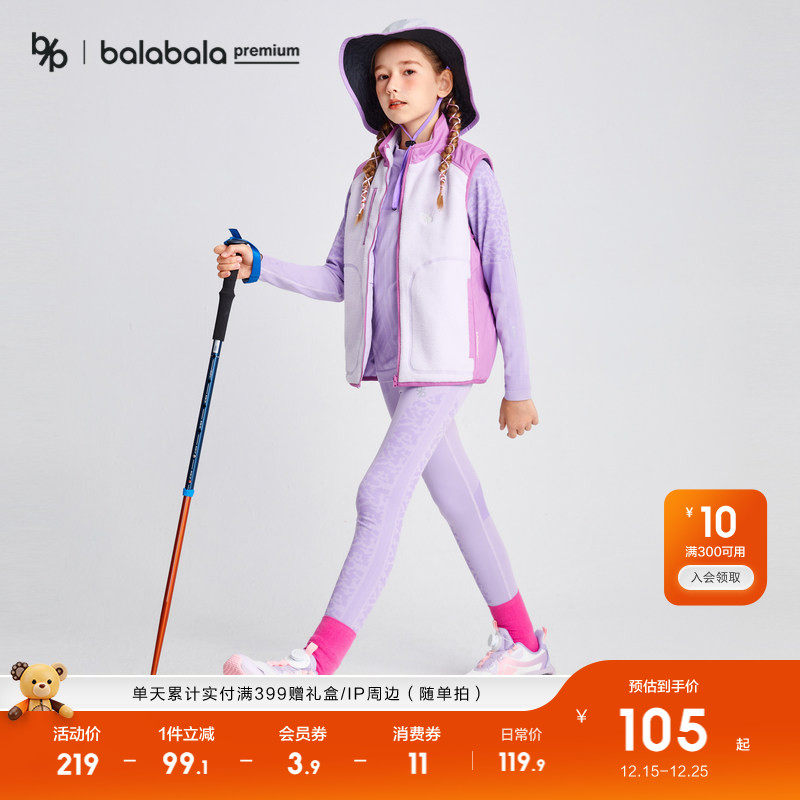 巴拉巴拉童装儿童套装女童春秋山野徒步系列速干排汗舒适打底套装