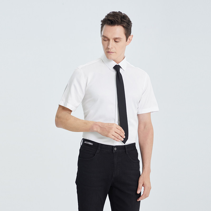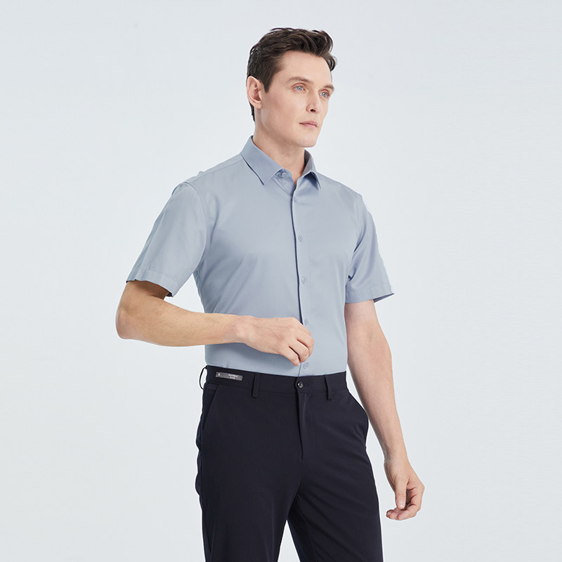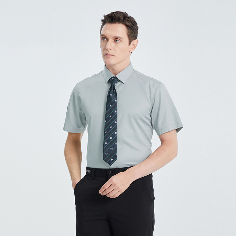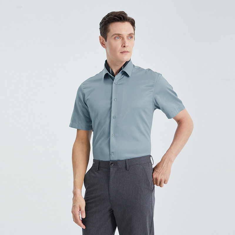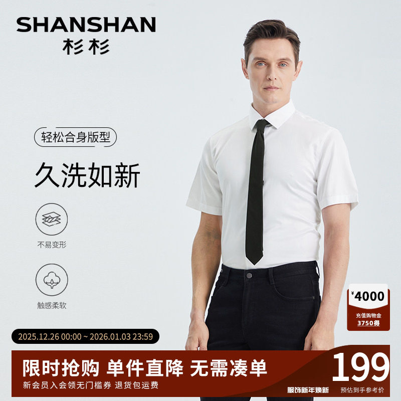 杉杉官方男士免烫衬衫男短袖纯棉2025夏季新款通勤休闲纯色衬衣男