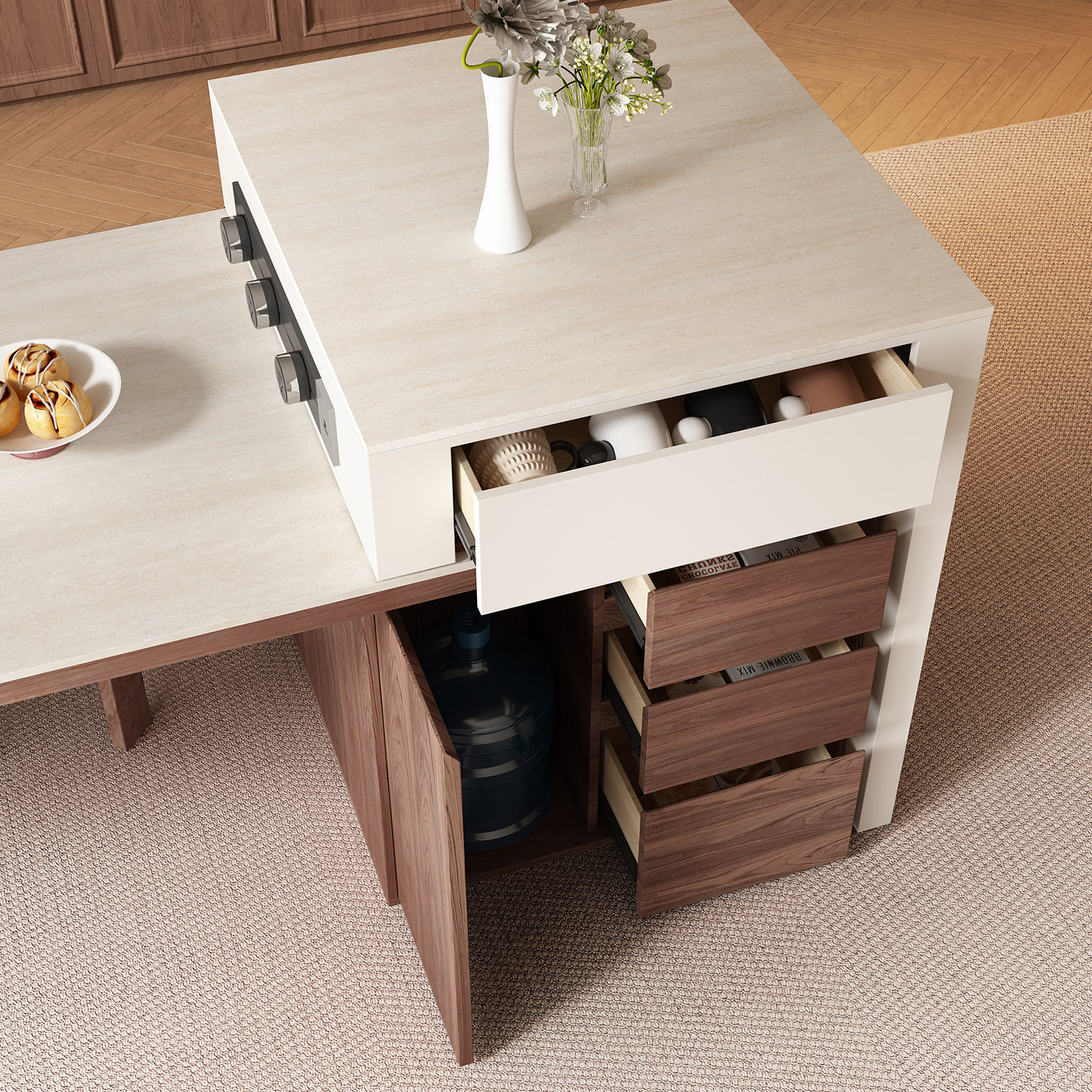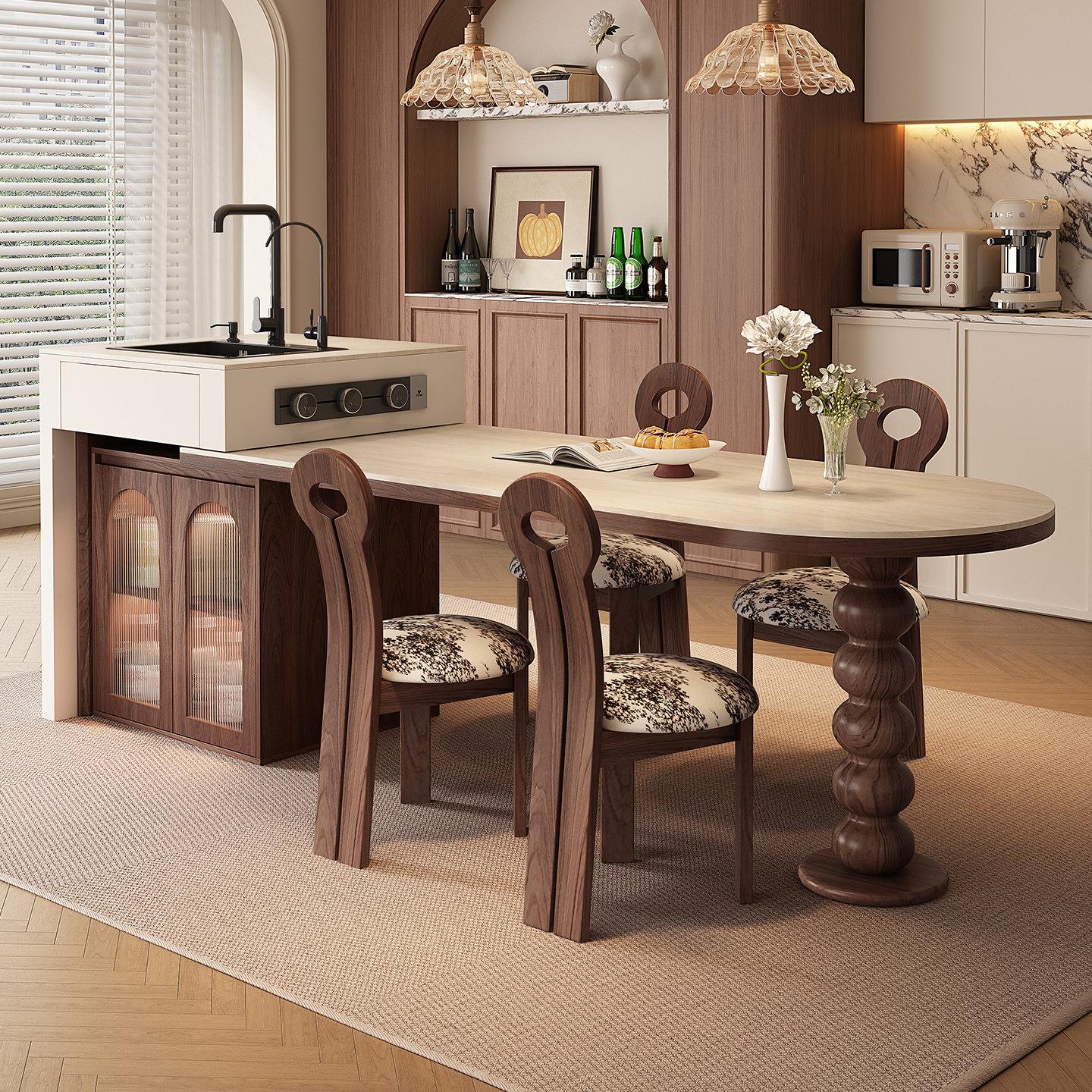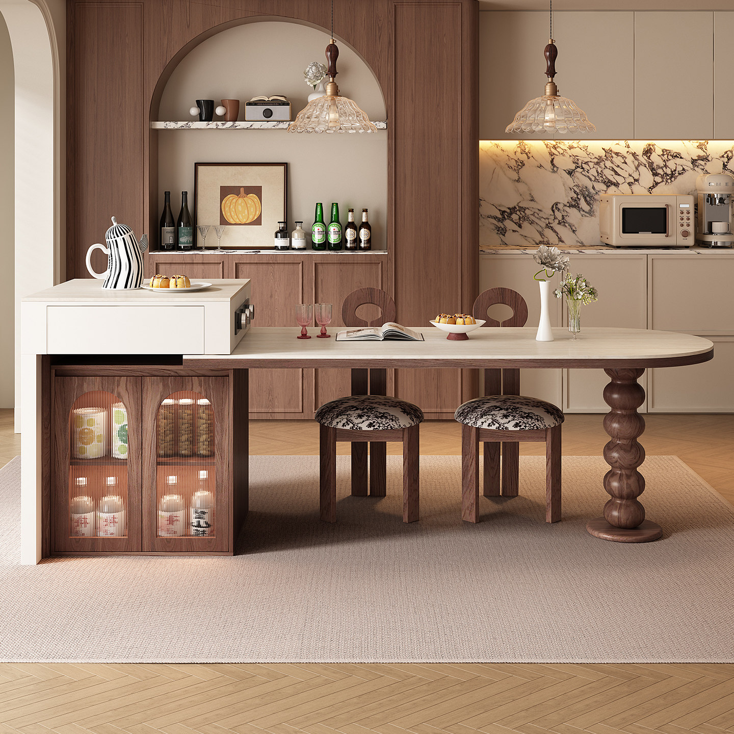 法式中古风岛台伸缩餐桌一体岩板家用小户型客餐厅带储物吧台倒台