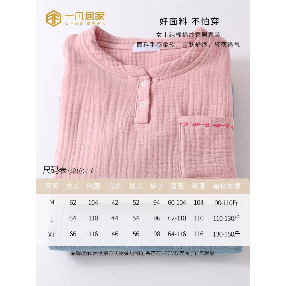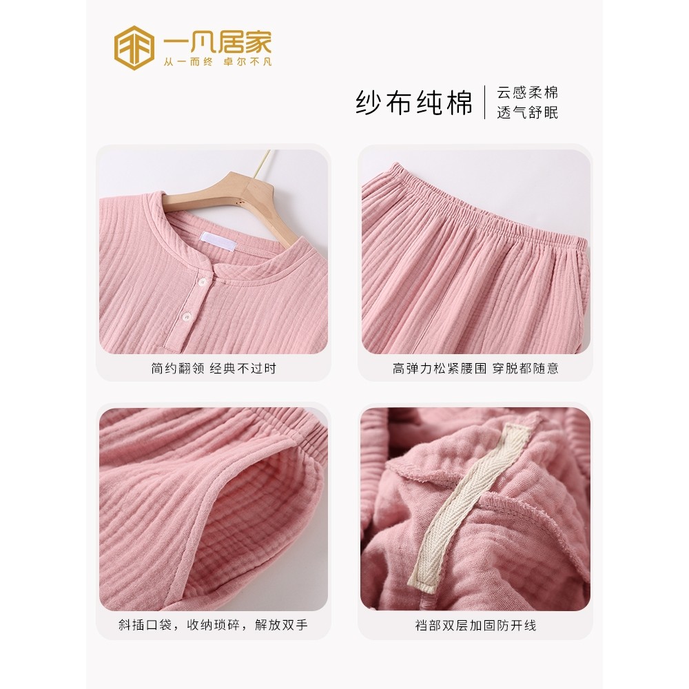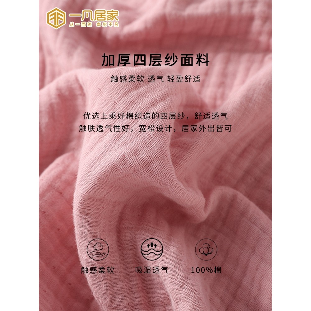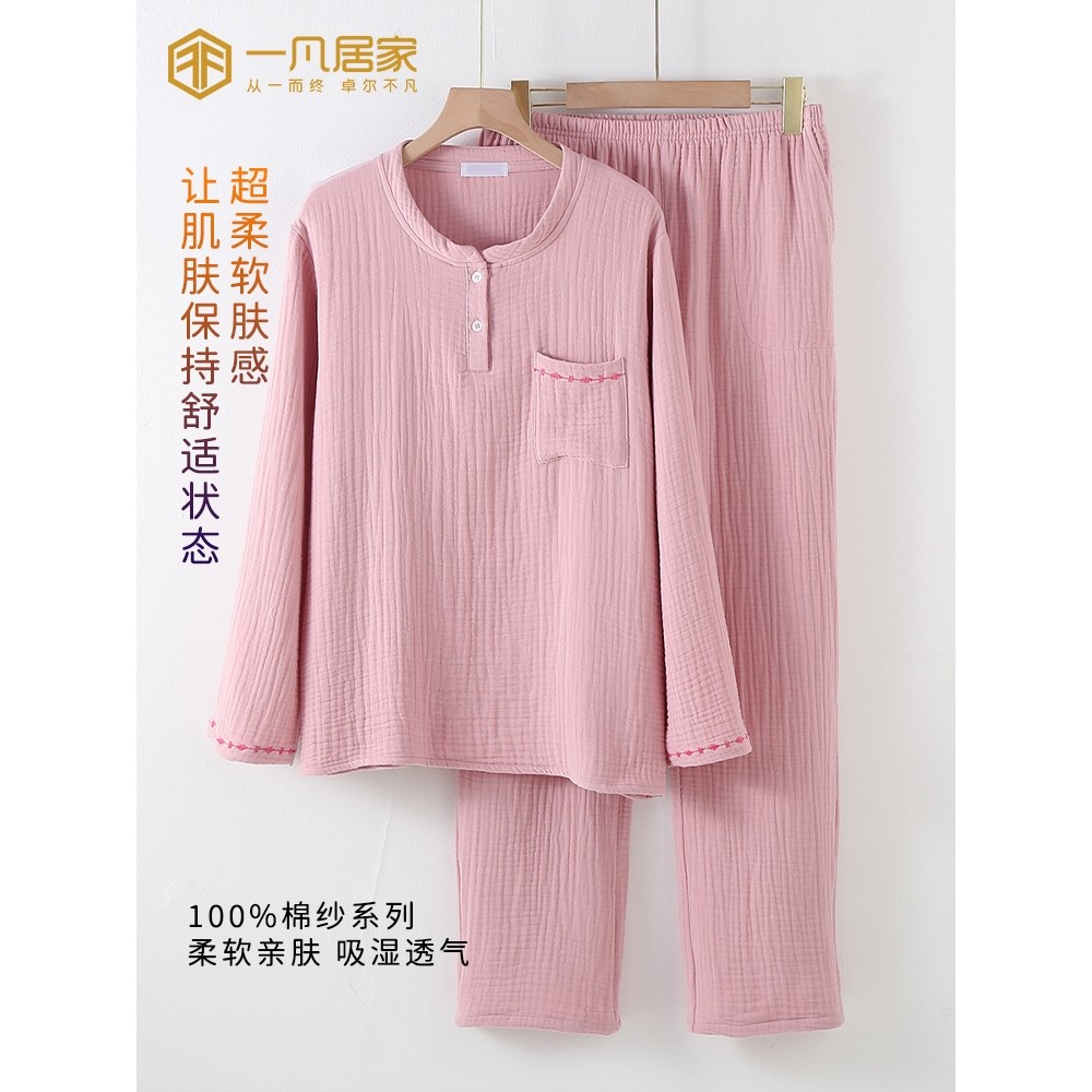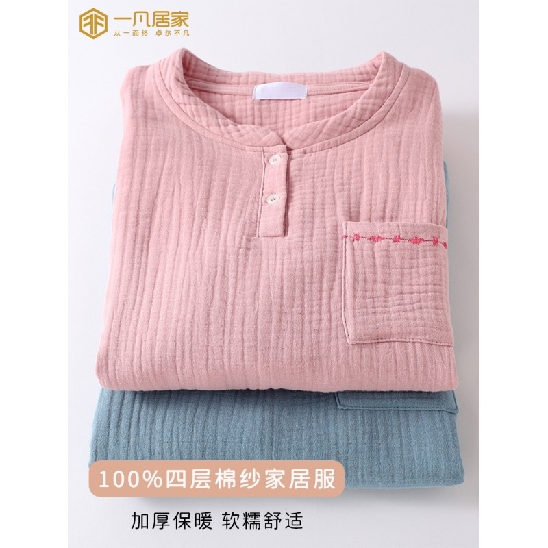 红豆全棉加厚四层纱布睡衣女2025新款套装春秋款简约纯棉两件套家