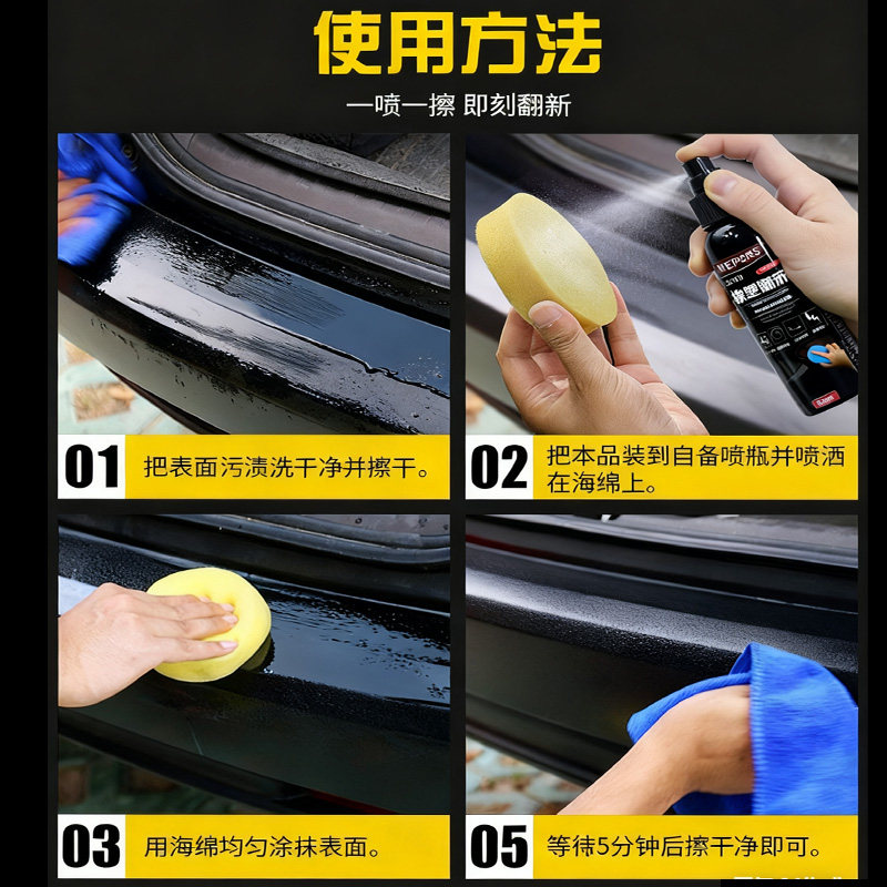 塑料橡塑翻新剂内饰镀膜剂还原镀晶仪表前后杠发白黑亮汽车件保养