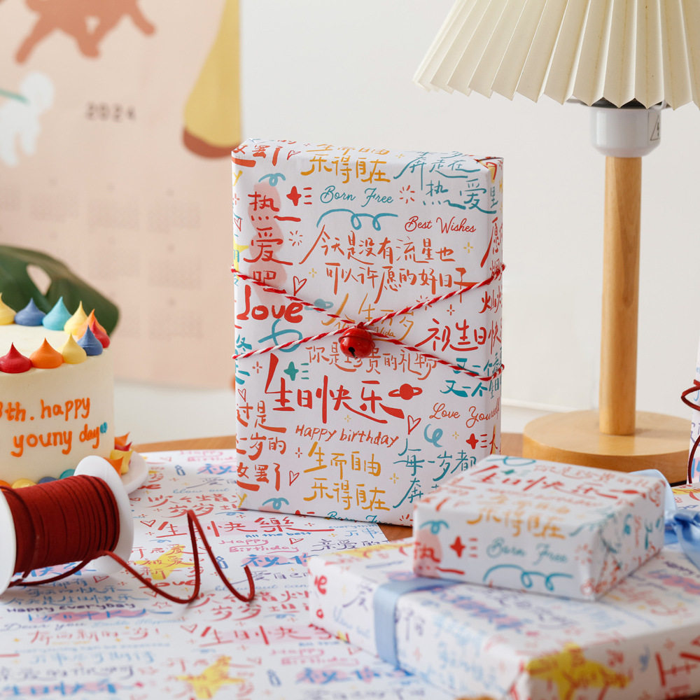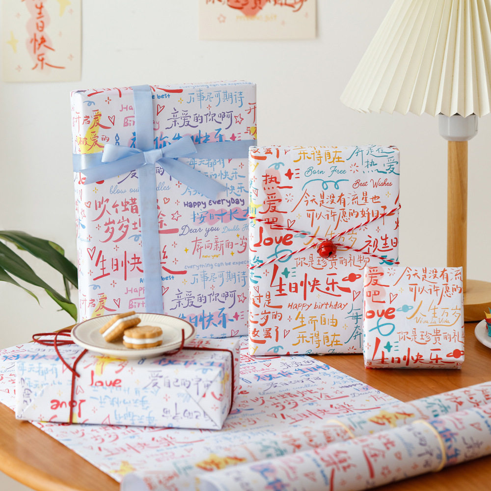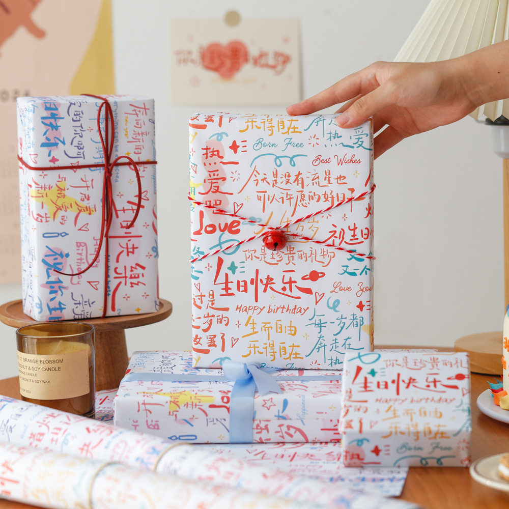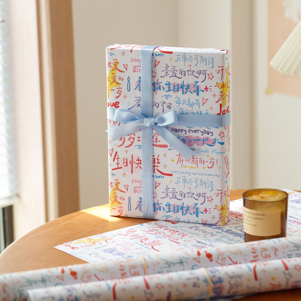 儿童生日礼物包装纸高级感生日快乐涂鸦礼品纸大尺寸打包纸材料包书纸礼盒的彩纸玩具零食糖果牛皮纸高颜值
