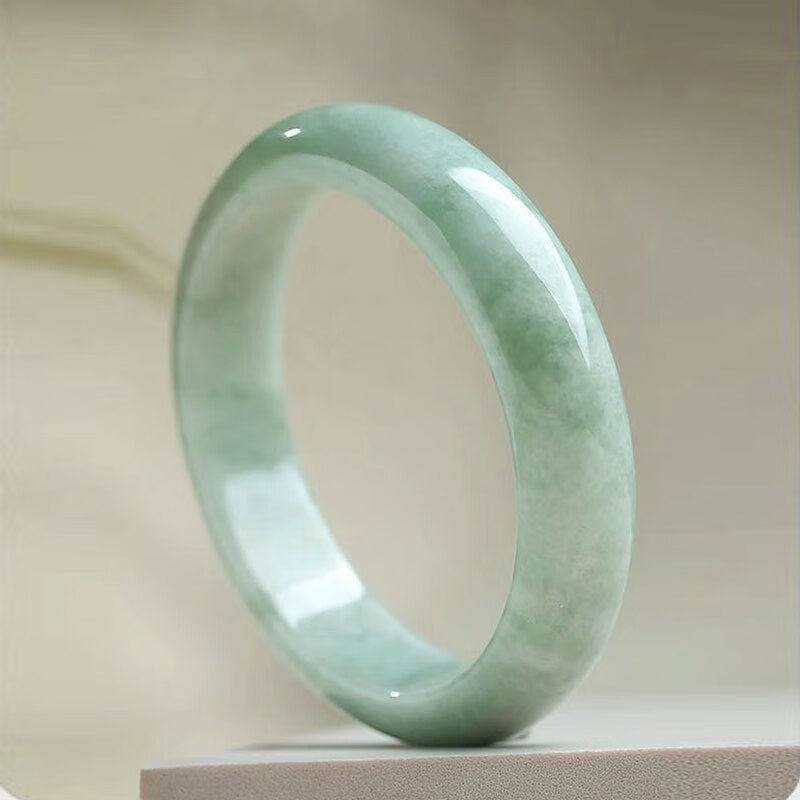 正品翠色飘花手镯真玉石A货淡绿色贵州翠玉手镯气质送妈妈礼物品