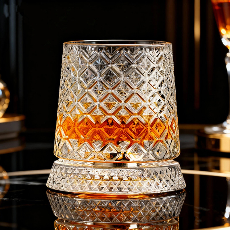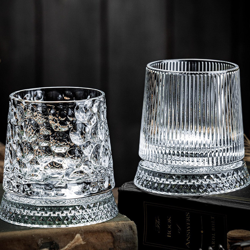 酒具圆形酒杯浮雕烈酒杯水杯休闲风复古风可旋转威士忌酒杯转转杯