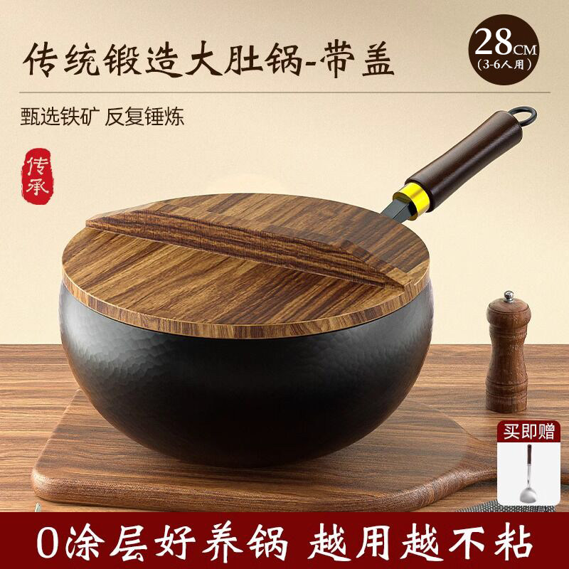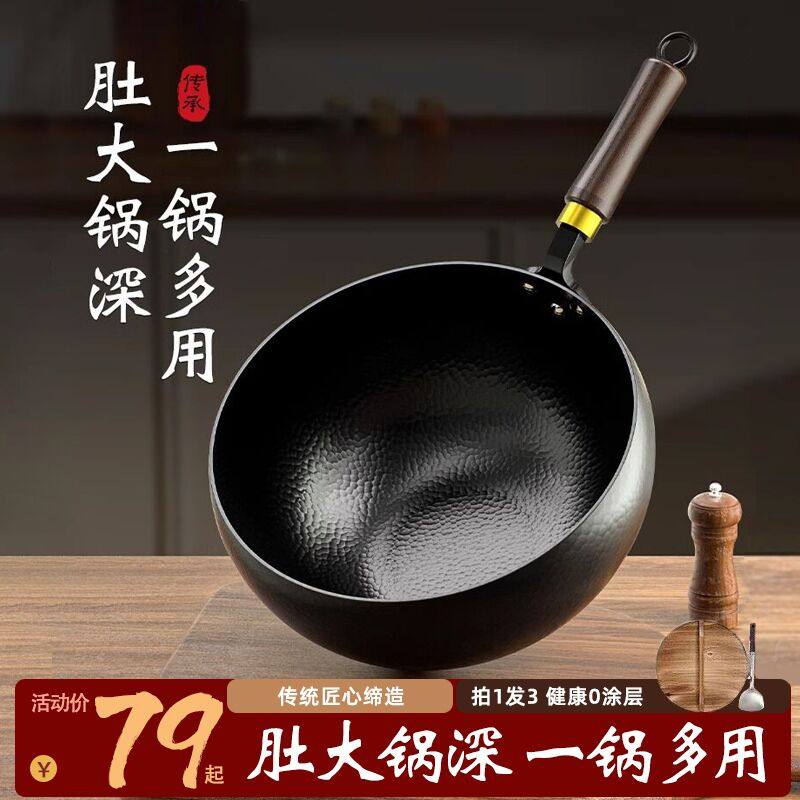 铁锅官方旗舰炒菜锅老式炒锅铁锅家用不粘锅无涂层燃气灶适用