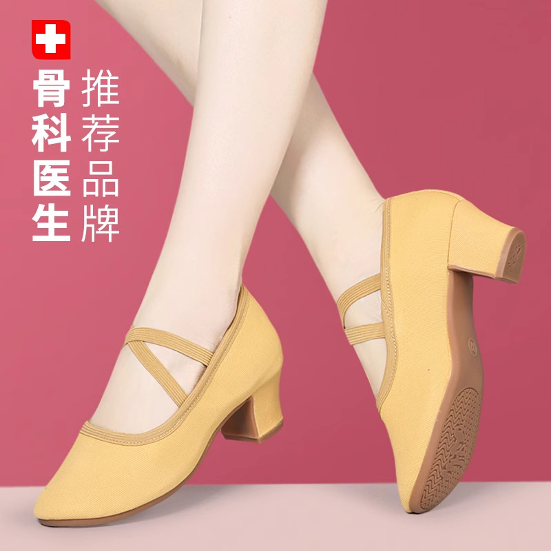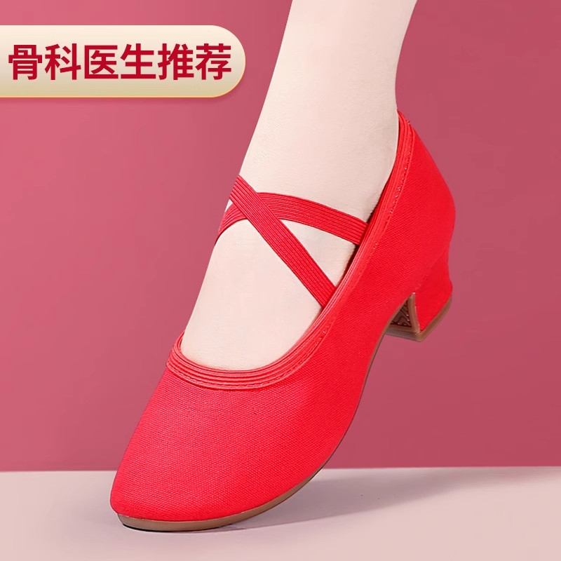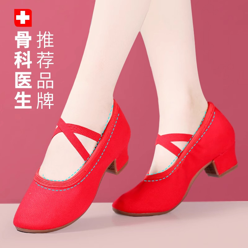 广场舞鞋女2025新款女士跳舞专用软底不累脚舞蹈鞋牛筋底红色中跟