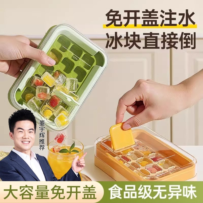 新食品级冰块模具按压冰格家用冰箱自制冰块储存盒带盖冻冰块神器