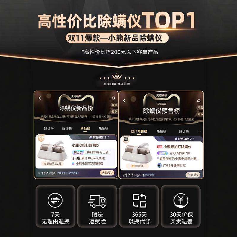小熊除螨仪家用床上吸尘器滚刷大吸力紫外线杀菌除湿螨虫神器双杯