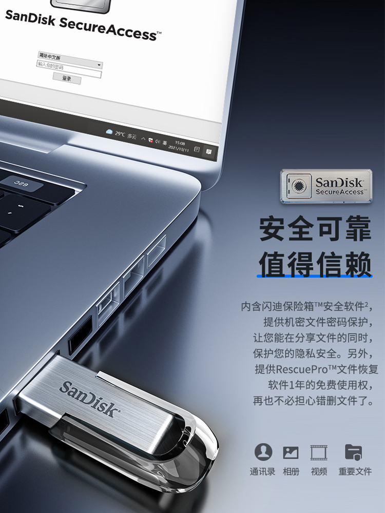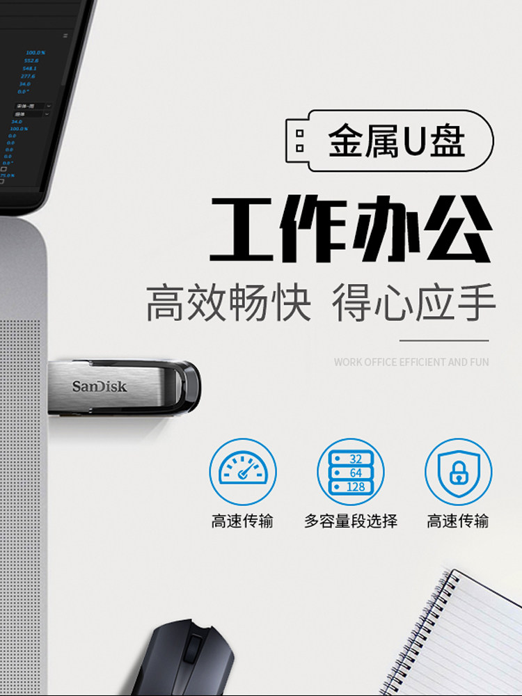 闪迪U盘512g正品256g加密大容量128g手机电脑两用U盘定制刻字CZ73