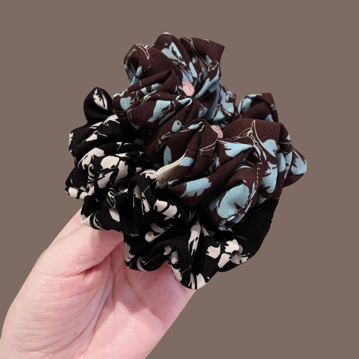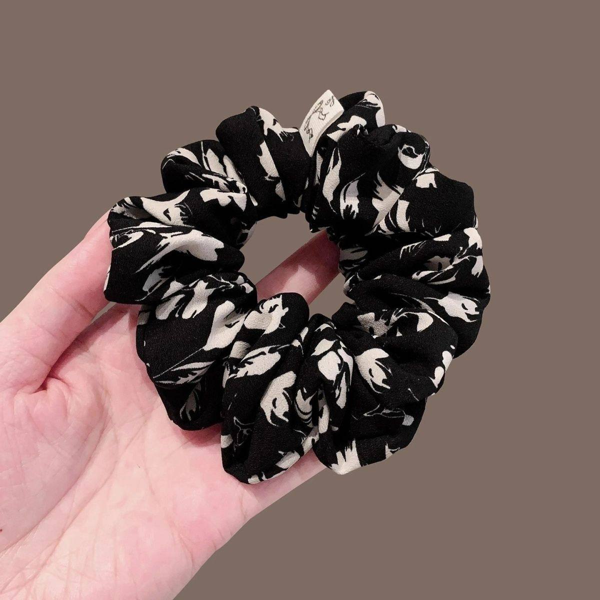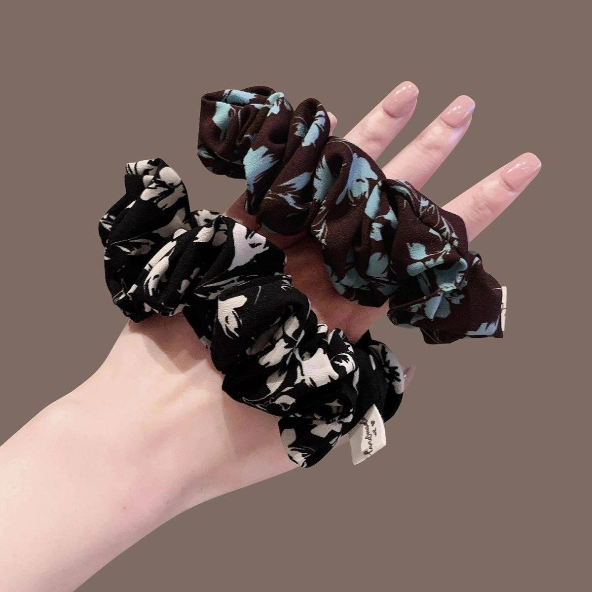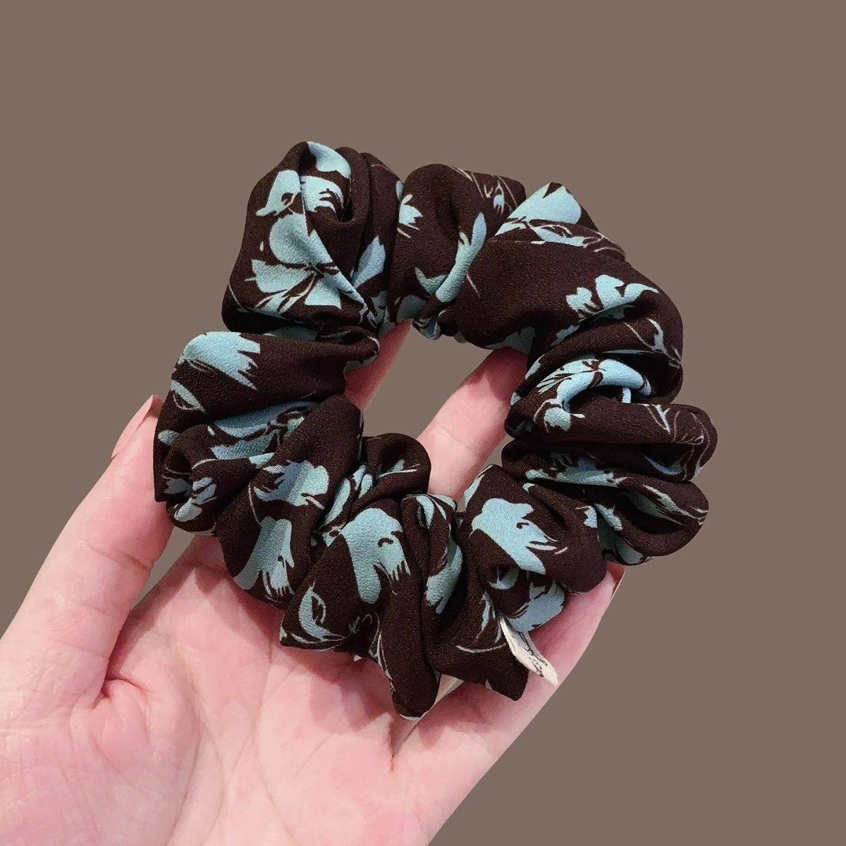 简约复古印花大肠发圈优雅气质时尚缎面扎发发圈百搭碎花头绳发饰
