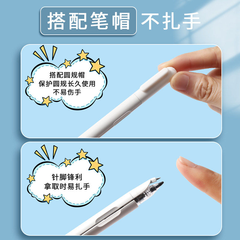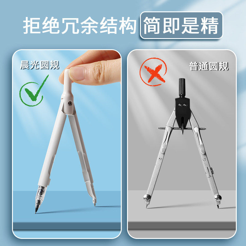 晨光笔式圆规初中生专用金属圆规高颜值高中生专业绘图数学考试按动出芯小学生专用六年级笔型圆规可替换芯2B