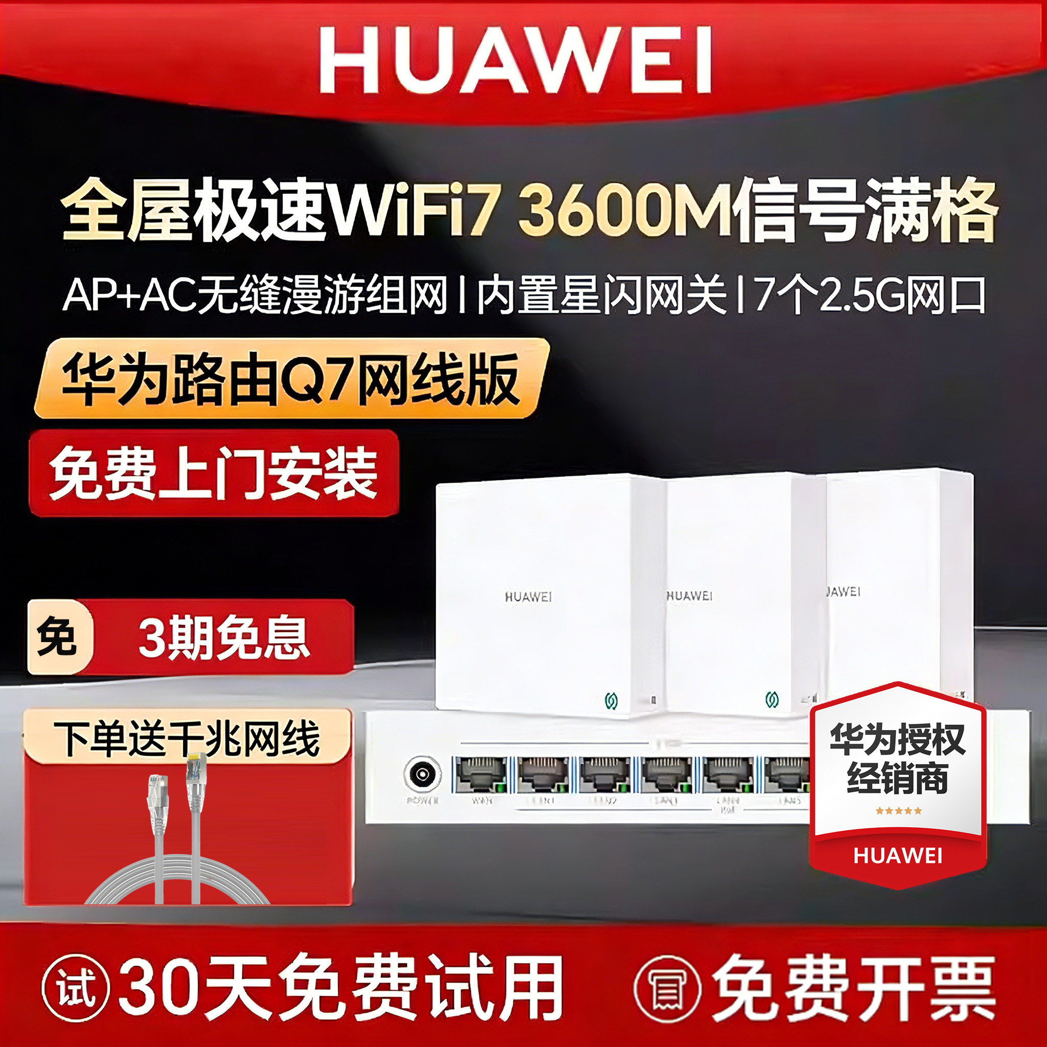 华为凌霄子母路由器q7网线版全屋无线WiFi7内置星闪网关路由器家用大户型别墅一拖三有线mesh组网ap面板